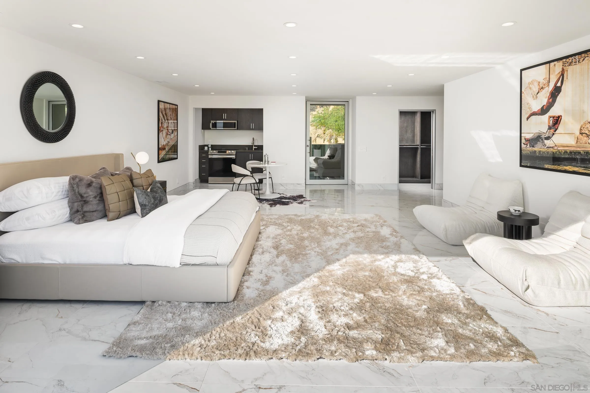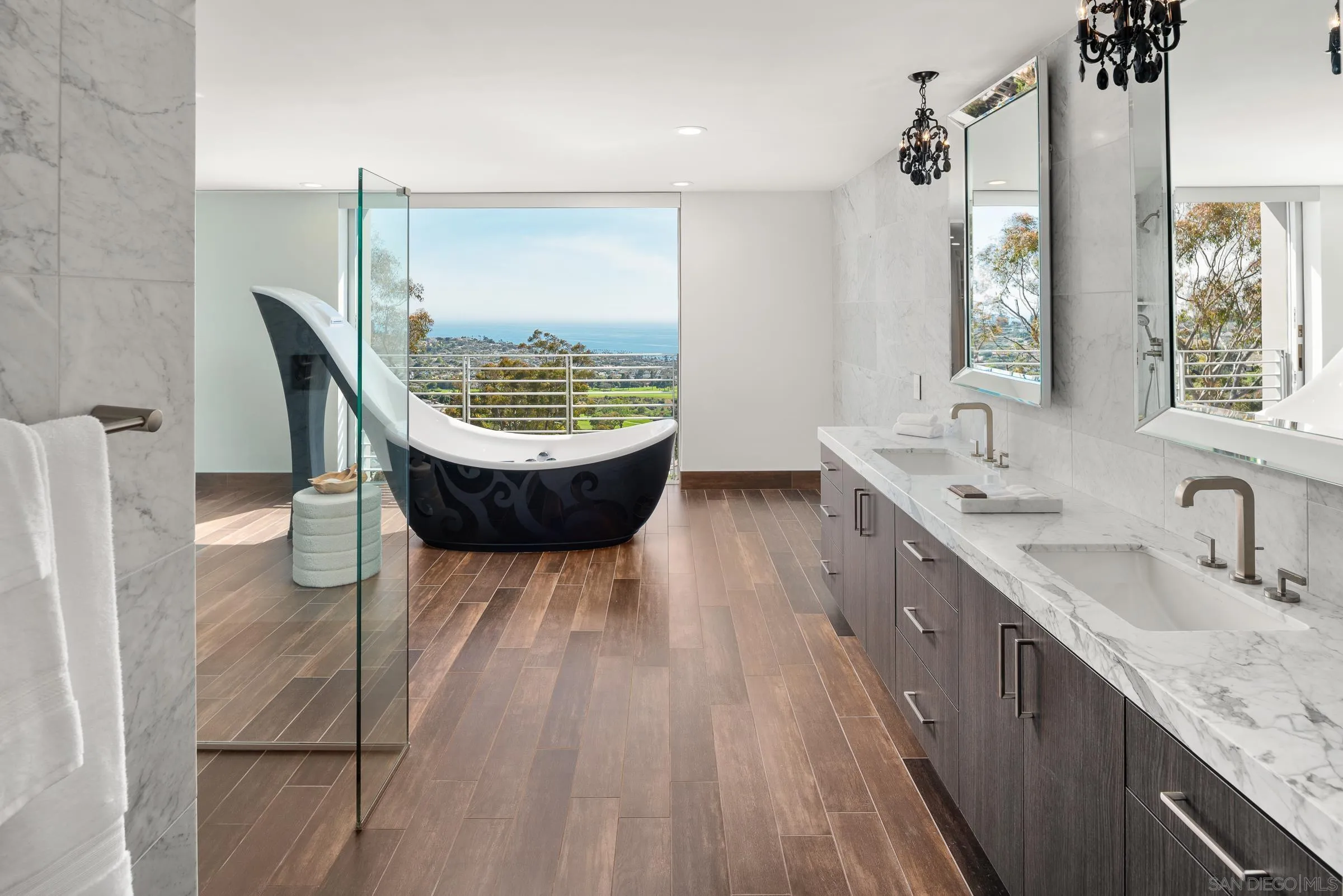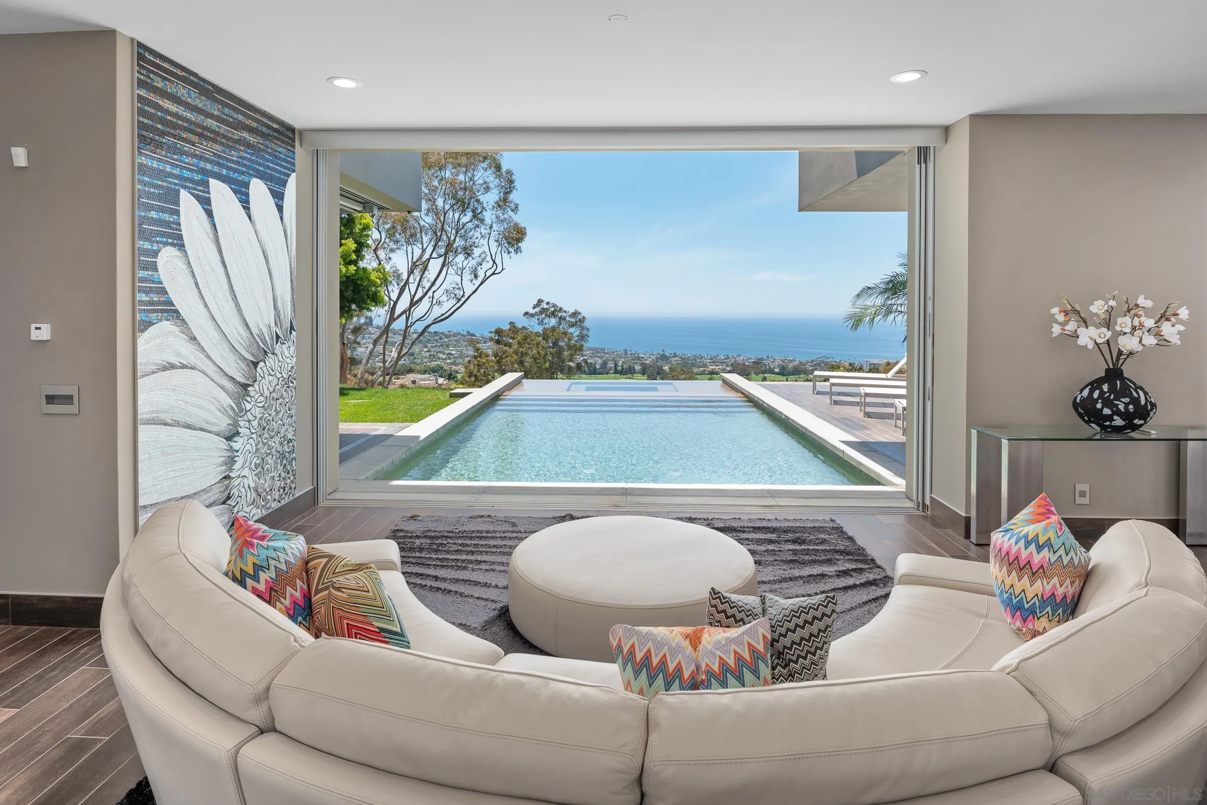 Perched above La Jolla’s prestigious Country Club, this award-winning contemporary estate by Jorge Ozorno is a true work of art. Designed to embrace the breathtaking surroundings, floor-to-ceiling glass walls fully retract to expansive decks and terraces, creating seamless indoor/outdoor living and capturing panoramic views of the Pacific Ocean, golf course, and village below. This minimalist masterpiece offers 6 bedrooms, 7 bathrooms, a private office, detached gym/yoga studio, infinity-edge pool and spa, sauna, and fire pit. The chef’s kitchen is outfitted with sleek custom cabinetry and a dramatic natural stone island—perfect for entertaining or quiet nights at home. The entire third floor is dedicated to the luxurious primary suite, featuring a private view deck, spa-inspired bath with a sculptural freestanding tub overlooking the ocean, and a newly reimagined boutique-style walk-in closet. Set on over half an acre with room to add a sport court, garden terraces, or outdoor lounge areas, this is a rare opportunity to own a timeless architectural statement in one of La Jolla’s most sought-after locations.