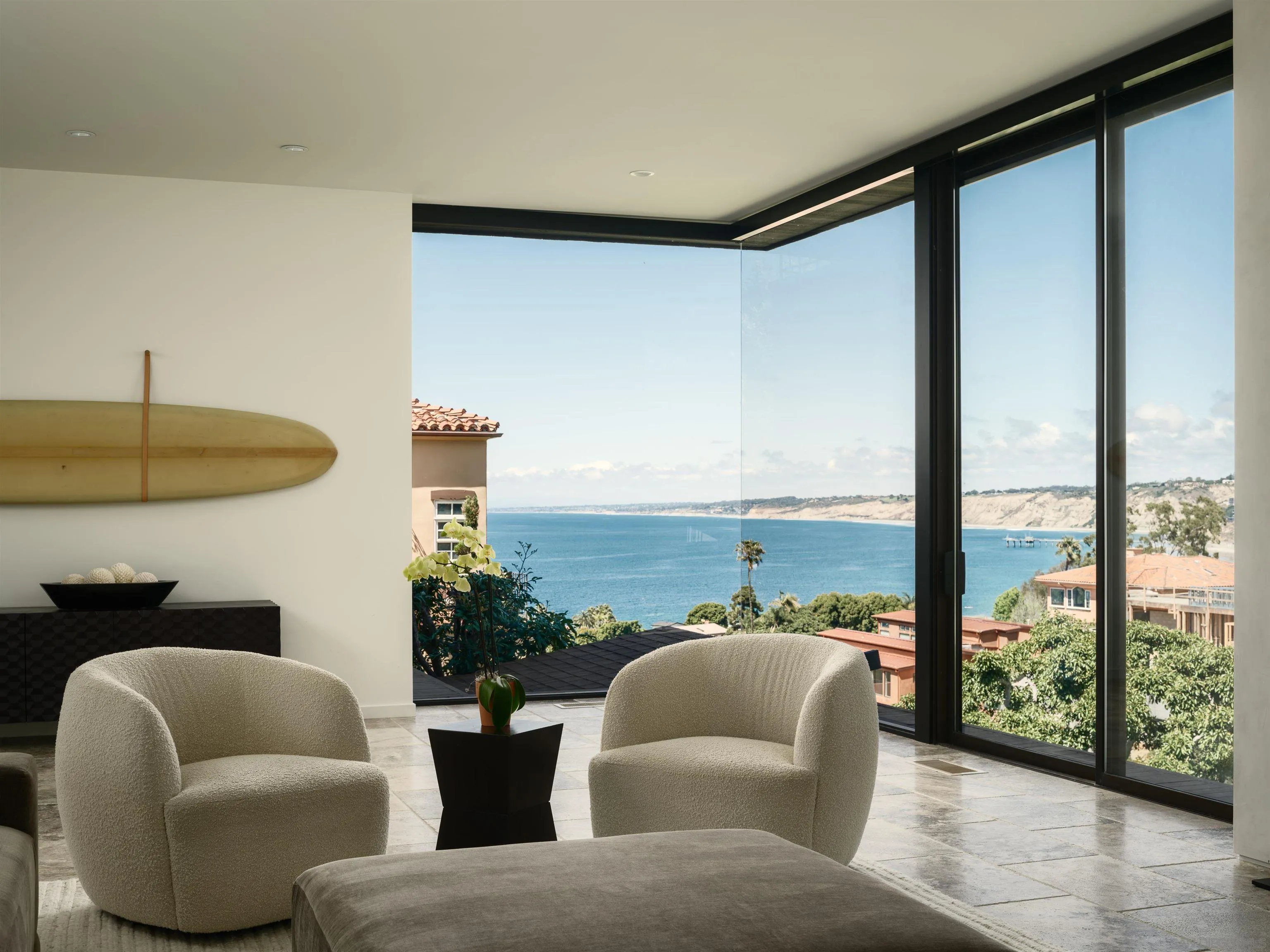 Rare coastal architectural gem by noted La Jolla architect Rod Youngson with panoramic Blue Pacific, coastline, and whitewater views. Thoughtfully updated to enhance its timeless design, this exceptional residence offers soaring ceilings, walls of glass, refined finishes, and remarkable natural light. The main living areas open seamlessly to a large private courtyard, creating an ideal indoor-outdoor setting. A truly uncommon offering combining architectural pedigree, quality craftsmanship, breathtaking views, and rare walkability to the heart of the Village, just moments from renowned dining, boutiques, and beaches.