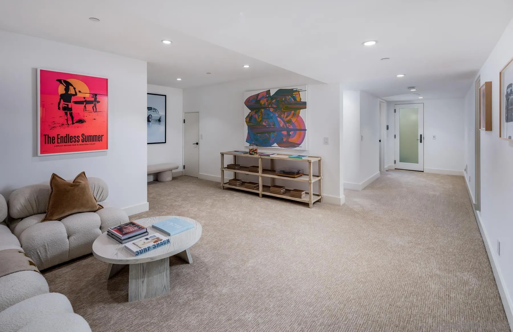 A refined architectural residence in La Jolla Shores just moments from beach access and capturing breathtaking panoramic ocean views. Featured in San Diego Home & Garden and built by Hill Construction, the home pairs strong design with thoughtful, highly functional living. The main level offers true single-level convenience, with living, dining, family room, kitchen, office, and primary suite all seamlessly connected. Thirteen sets of solid mahogany French doors open to both an expansive ocean-view deck and a protected interior courtyard, creating exceptional indoor-outdoor flow. Galala limestone flooring extends throughout the main level, courtyard, and pool deck, complemented by custom cabinetry with book-matched fumed eucalyptus, black granite countertops in the kitchen, and Navona travertine in the primary bath. The lower level provides four private bedroom suites, each with its own bath, along with a spacious common room and access to a patio with hot tub - ideal for guests or multigenerational living. A vanishing-edge pool with resistance jets by Mission Pools anchors the backyard, while fenced yard spaces, a dog run with direct access, four private parking spaces, and a generous two-car garage complete this thoughtfully executed coastal retreat.