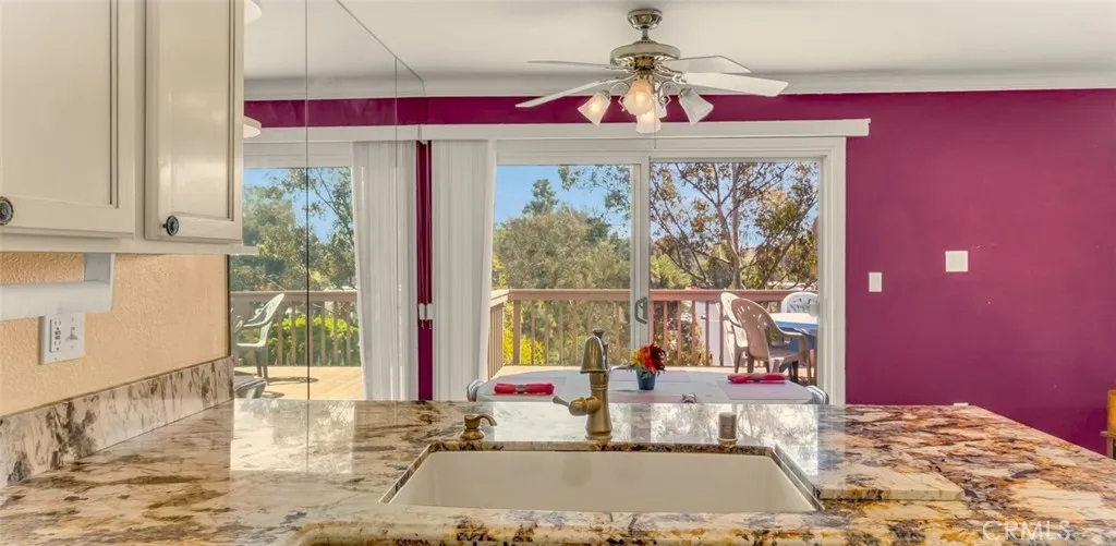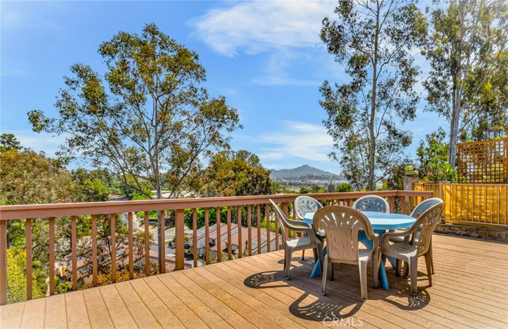 Set on the hill among high trees offering a wonderful view perspective of Mt. Helix and surrounding neighborhood....a 3bdrm 2.5 bath....a splash of color with a warm contemporary vibe, wood flooring in living room-dining area and kitchen, recessed lighting, 1/2 bath on first floor, all bedrooms up...primary bedroom with large window catching morning sun, ceiling fan, walk-in closet, primary bath dual vanities, wall to wall mirror. separate custom walk-in shower....roomy second bedroom, mirrored closet door....3rd bedroom perfect for office....Kitchen with newer refrigerator included, microwave, granite counters, stainless steel sink, breakfast bar, pass-through to dining area with sliding door to large deck....Ceiling fans in all bedrooms....Blinds on all windows....washer/dryer in garage included with additional refrigerator....Well established and maintained Strawberry Hills HOA in the heart of La Mesa....convenient access to US Hwy (8) east/west around the corner US Hwy (15) north/south....Lake Murray regional park hiking, biking, running, fishing and more with regional shopping minutes away....