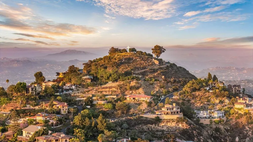 An Architectural statement with 320 unobstructed views from the mountains to the ocean, this reimagined Mount Helix estate blends modern design with Elevated Luxury. Privately gated and set on a rare .77-acre flat, usable lot, it features an oversized driveway and expansive outdoor space ideal for entertaining or future additions. Inside, soaring cathedral ceilings, floor-to-ceiling windows, and designer lighting frame a grand open-concept living area. The chefs kitchen stuns with Thermador appliances, Sub-Zero refrigeration and wine storage, quartz waterfall island, and slide-away pocketing doors that open to a spacious deck and backyard. The main-level primary suite offers resort-style luxury with an oversized soaking tub, dual vanities, and dual walk-in closets. Upstairs: a second full primary suite and two large bedrooms, each with en-suite baths. A dedicated office, powder room, and oversized laundry complete this offering. This is more than a homeits "The One" that sets the bar.