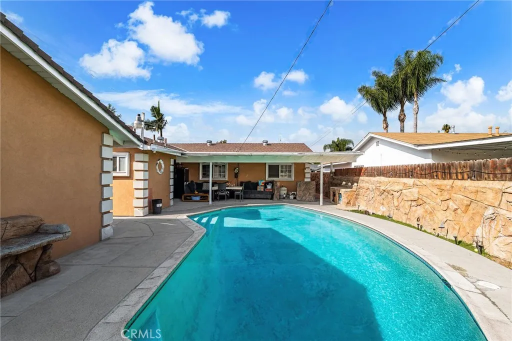 This inviting 3-bedroom, 3-bathroom home spans 1,489 square feet and combines style, comfort, and functionality. Laminate floors run throughout the open floor plan, creating a warm and welcoming atmosphere. The large family room offers plenty of space for relaxing or entertaining, while the adjoining dining area provides a perfect setting for meals with family and friends. The backyard is a private oasis featuring a sparkling pool and a built-in barbecue island, ideal for outdoor gatherings or quiet evenings under the sky. Additional features include a detached garage, offering convenient storage and versatility, making this home both practical and enjoyable for everyday living.