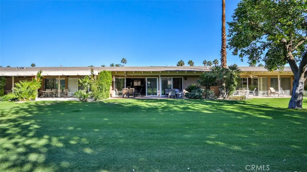 Turnkey furnished home with plenty of space for all, this charming 3-bedroom home offers a host of features! You'll enjoy watching the American Express PGA tour in January from the patio as it faces the 5th tee. Inside, prepare meals in the well-equipped, full kitchen with stainless steel appliances and an island with counter seating and don't miss the built-in wine cooler. Dine together (or play a few board games) at the table. And then wrap up your evenings with a movie or your favorite TV show on the flat-screen TV located in the spacious living room. Each of the 3 spacious bedrooms feature a glass slider that opens to an outdoor area. Outside, relax on your furnished, west-facing patio, or take advantage of the on-site amenities in this gated community including a shared pool located just down the street. Nearby you'll find abundant recreation opportunities in the beautiful city of La Quinta including a number of public parks that offer tennis courts, bocce ball courts, and workout/sauna facilities. You'll also find hiking and biking trails as well as casual walking options in Old Town La Quinta. Downtown is also the place to be for shops, restaurants, farmer's markets and several golf courses, so don't forget to pack your clubs! Sleeps 8: Primary bedroom is a king, 2nd bed is a full/queen, 3rd bed is 2 twins and sleeper sofa. (All furniture included.)