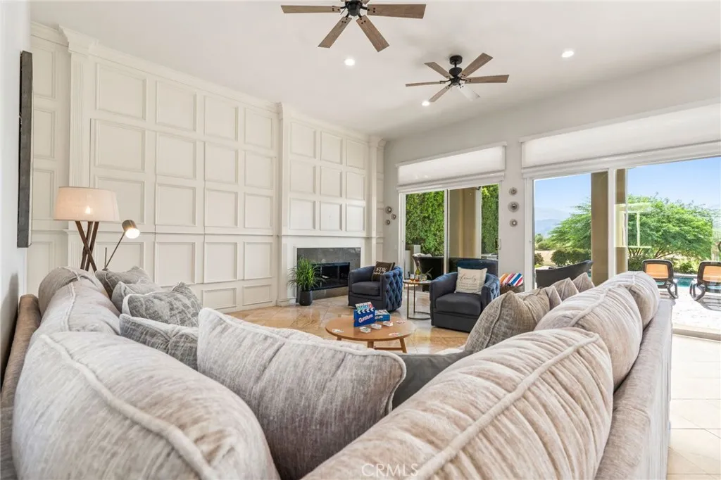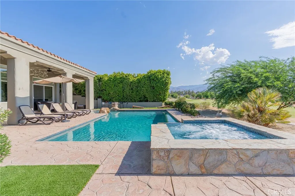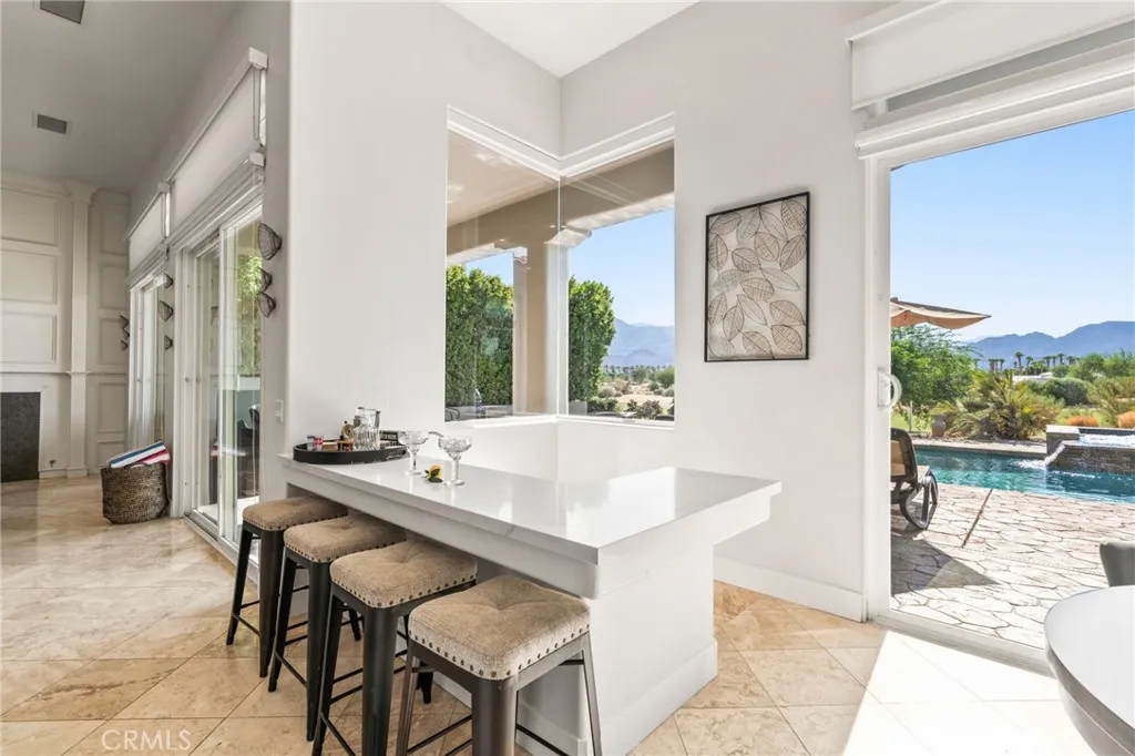 Nestled within the prestigious PGA West community, this exceptional residence offers an unparalleled desert lifestyle with breathtaking, unobstructed views of the Santa Rosa Mountains and the 6th fairway of the acclaimed Greg Norman Golf Course. A private courtyard entry welcomes you into an expansive open-concept floor plan designed for both comfortable living and effortless entertaining. The chefs kitchen is a standout, recently updated with new countertops and featuring top-of-the-line stainless steel appliances, a double island, walk-in pantry, and sunken barideal for hosting and culinary enthusiasts alike. The home showcases freshly painted interiors, elegant travertine flooring, and custom built-in cabinetry throughout. The spacious primary suite provides a peaceful retreat, while walls of sliding glass doors in the great room frame stunning golf course and mountain views, seamlessly blending indoor and outdoor living. The backyard is a true desert oasis, complete with brand-new artificial turf, a saltwater pool with new Pebble Tec finish, spa with beach entry, BBQ area, firepit, and outdoor dining spaceperfect for enjoying spectacular desert sunsets with family and friends. Additional features include smart home automation with Wi-Fi thermostats, smart door locks, and mobile app-controlled pool and spa. Offered turnkey furnished, this home combines luxury, comfort, and modern technology in one of the deserts sought-after golf course communities.