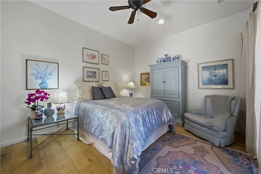 Within the gated community of Carmela in La Quinta, this single-level Spanish-inspired residence blends timeless design with thoughtful updates and seamless indoor-outdoor living. Offering 4-bedrooms and 3.5-baths and 3-car garage, the home includes an attached casita that now connects directly to the main housecreating a flexible space ideal for guests, a home office, or multigenerational living. A gated courtyard entry leads to a bright, open floor plan with six sets of French doors that fill the home with natural light. The formal living room with soaring ceilings opens to a central courtyard with interlocking pavers and views of the pool and its cascading water features, offering a tranquil retreat for relaxation or entertaining. The kitchen and adjoining family room form a warm, social hub featuring stone countertops, an oversized island with bar seating, stainless steel appliances, and an impressive pantry providing abundant storage. The family room is anchored by a cozy fireplace and lined with numerous windows framing views of the outdoors. The primary suite is a peaceful escape with direct yard access, a spacious walk-in closet with custom built-ins, and a luxurious bath with dual vanities, soaking tub, and separate shower. The outdoor space was completely transformed in 2022 with the addition of a new saltwater pool with both chiller and heater system, complemented by new landscaping, lighting, and irrigation for enhanced privacy. Recent updates elevate the homes comfort and style, including interior and exterior paint, roof tune-up, new water heater, HALO air pur