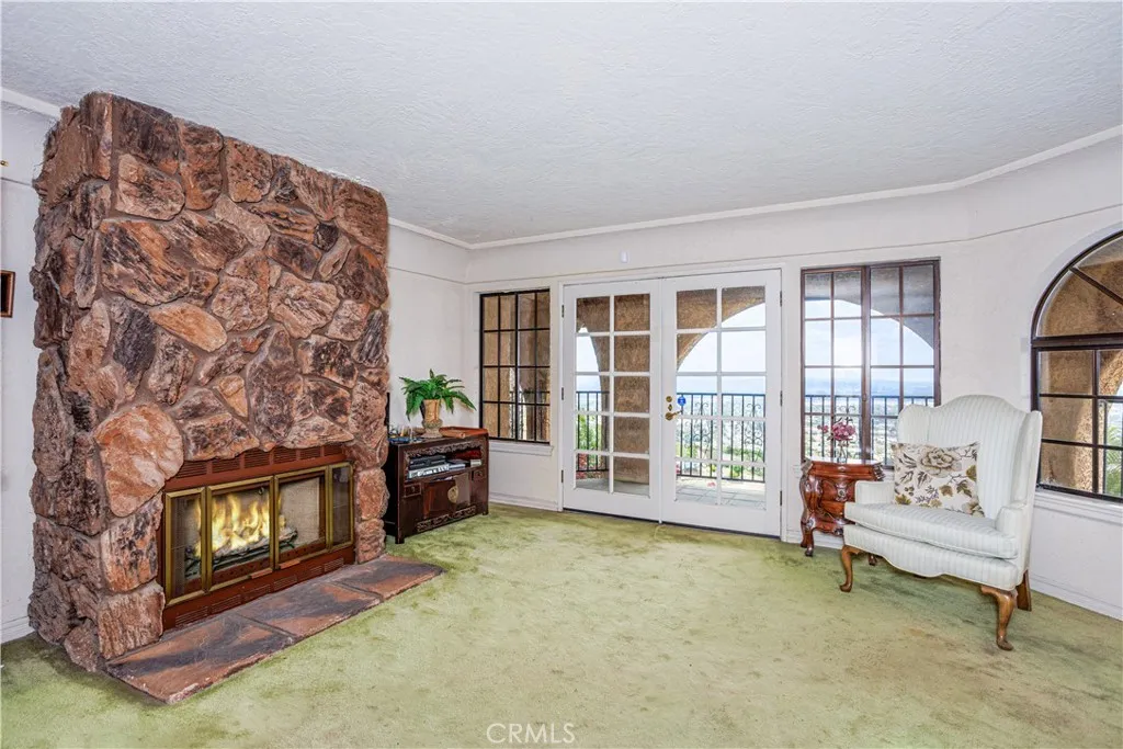 Don't miss this rare opportunity to own a unique property at 350 Roughrider Road in La Verne. Nestled in Saddleback Crest Estates in Live Oak Canyon, this exceptional estate offers breathtaking panoramic views from its sprawling 30+ acres. The substantial 5,340 sq. ft. custom home, built in 1981, includes a 4-car direct access garage, porte-cochere, and ample parking for various vehicles. Furthermore, the expansive land provides significant potential for constructing additional structures, ADU's, guest house, garages, and/or recreational facilities. This gated property is a must-see for those seeking unparalleled privacy and space. Upon entering through the impressive double doors, you'll be captivated by a stunning wall of windows showcasing the panoramic views. The grand living space features a double-story ceiling, a large fireplace, and a decorative wood ceiling, creating an inviting and spacious atmosphere. A spiral double staircase leads to the upper level, where a supersized formal living room with a grand fireplace mantle and a cozy dining room offer incredible views. The upper floor also includes a practical kitchen with a central island, a spacious office, and the primary suite with its own fireplace. This exceptional layout features dual-master suites on each level, designed to maximize comfort and views, both with private outdoor access for seamless indoor/outdoor living. There are a total of five bathrooms for convenience. The upper-level primary suite has a large soaking tub positioned to enjoy the views, and a nearby half-bath. The lower level contains three