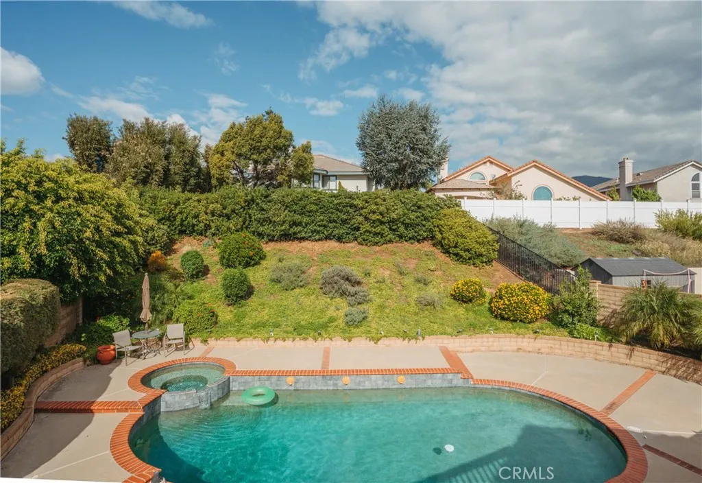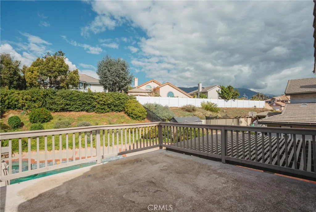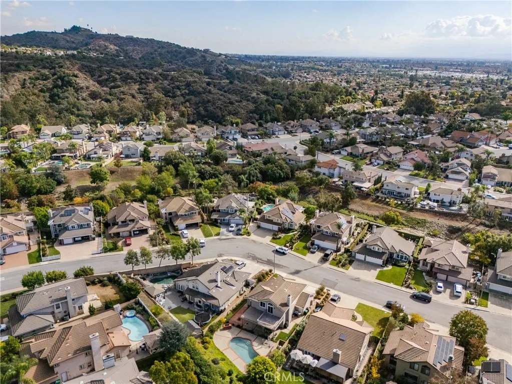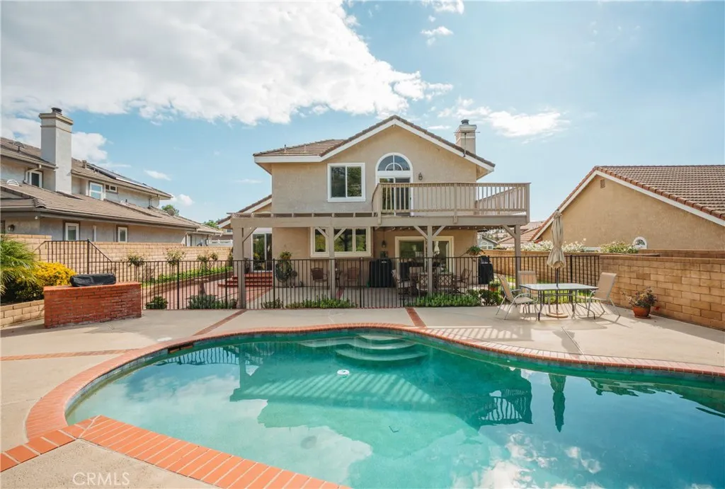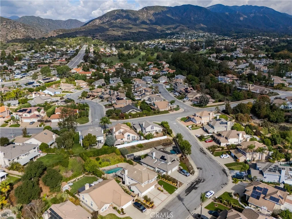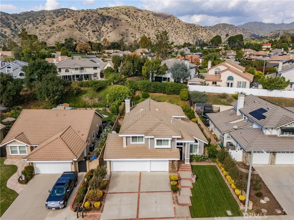 Absolutely stunning North La Verne pool home, located on a quiet cul-de-sac. A perfectly manicured front yard welcomes you into this meticulously maintained residence. Upon entry, soaring ceilings create a bright, open, and airy atmosphere. The formal living room, with real hardwood floors, seamlessly flows into the dining room, which features a sliding glass door that opens to the patio. The upgraded kitchen offers stone countertops, built-in appliances, a pantry closet, and a center island with seating. Enjoy picturesque views of the backyard from the kitchen sink windows. The kitchen overlooks the warm and inviting family room, complete with a gas fireplace and another sliding glass door leading to the backyard. The first floor is complete with a guest half bath and a separate laundry room with a sink and ample storage, conveniently connecting to the attached three-car garage. Upstairs, the expansive primary suite feels like a private retreat, featuring vaulted ceilings and an updated ensuite bath with dual sinks and a walk-in closet. Relax in the separate soaking tub while taking in breathtaking views, or step outside onto your oversized private balcony to enjoy even more spectacular scenery. Second level offers two additional spacious bedrooms and a full hall bathroom with a tub/shower combo. Step outside to your entertainers backyard, where a gated sparkling pool and spa await. This inviting outdoor space is perfect for relaxing, entertaining, and enjoying the serene surroundings. Additional features include pool finished in PebbleTec, wood shutters, crown molding, ne
