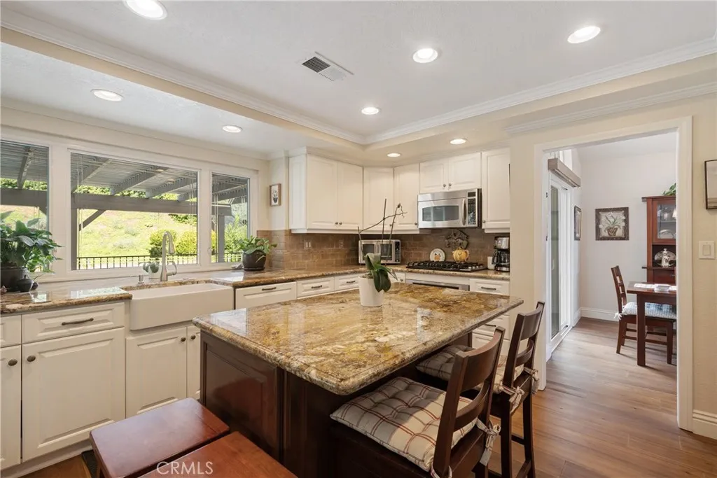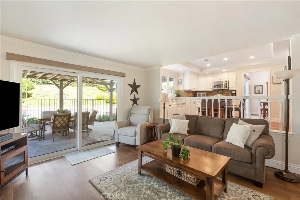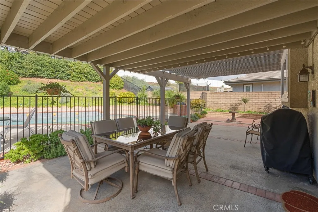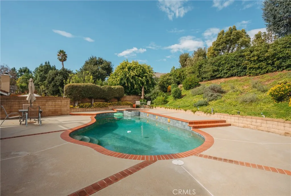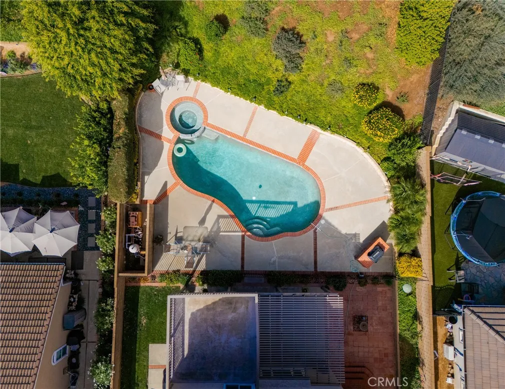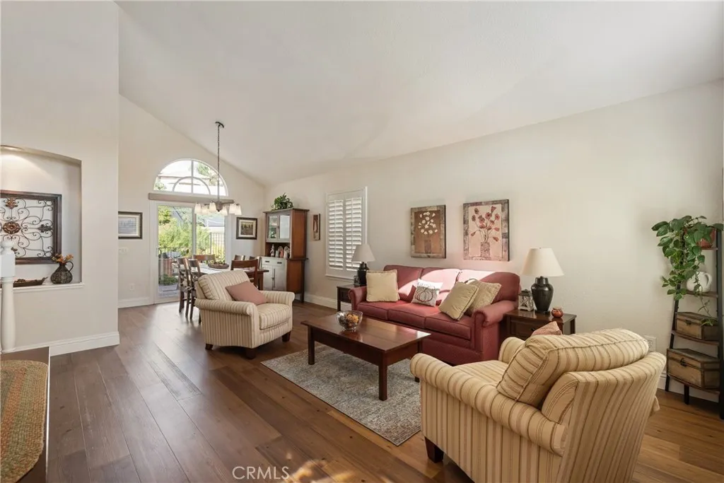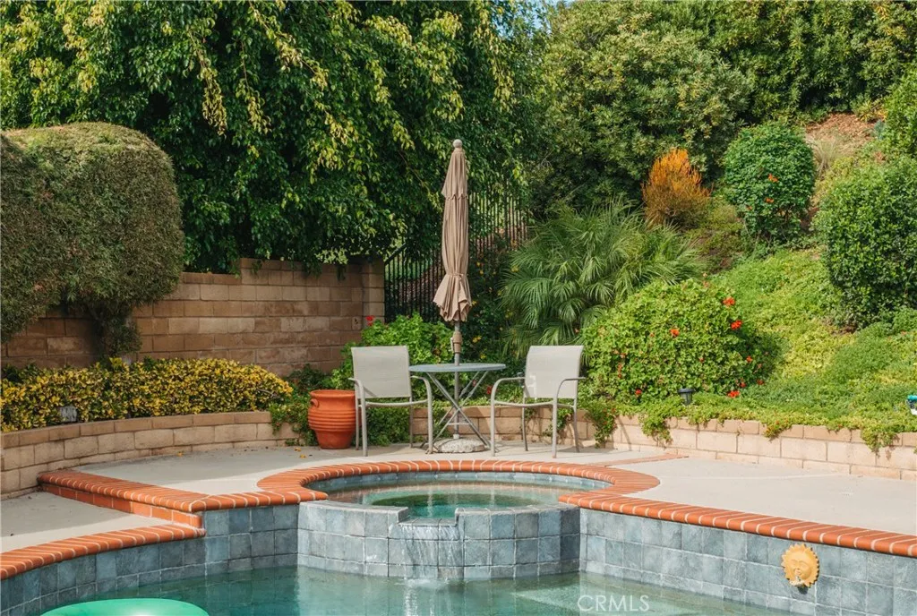 Absolutely stunning North La Verne pool home, located on a quiet cul-de-sac. A perfectly manicured front yard welcomes you into this meticulously maintained residence. Upon entry, soaring ceilings create a bright, open, and airy atmosphere. The formal living room, with real hardwood floors, seamlessly flows into the dining room, which features a sliding glass door that opens to the patio. The upgraded kitchen offers stone countertops, built-in appliances, a pantry closet, and a center island with seating. Enjoy picturesque views of the backyard from the kitchen sink windows. The kitchen overlooks the warm and inviting family room, complete with a gas fireplace and another sliding glass door leading to the backyard. The first floor is complete with a guest half bath and a separate laundry room with a sink and ample storage, conveniently connecting to the attached three-car garage. Upstairs, the expansive primary suite feels like a private retreat, featuring vaulted ceilings and an updated ensuite bath with dual sinks and a walk-in closet. Relax in the separate soaking tub while taking in breathtaking views, or step outside onto your oversized private balcony to enjoy even more spectacular scenery. Second level offers two additional spacious bedrooms and a full hall bathroom with a tub/shower combo. Step outside to your entertainers backyard, where a gated sparkling pool and spa await. This inviting outdoor space is perfect for relaxing, entertaining, and enjoying the serene surroundings. Additional features include pool finished in PebbleTec, wood shutters, crown molding, ne