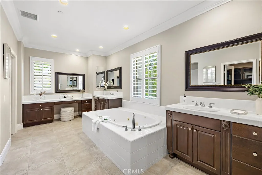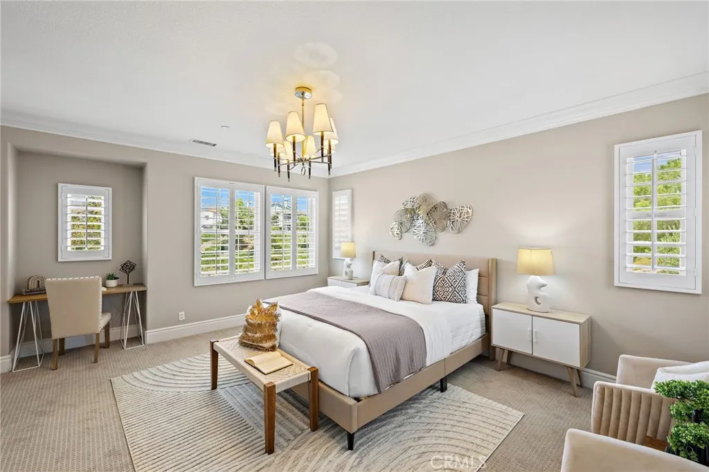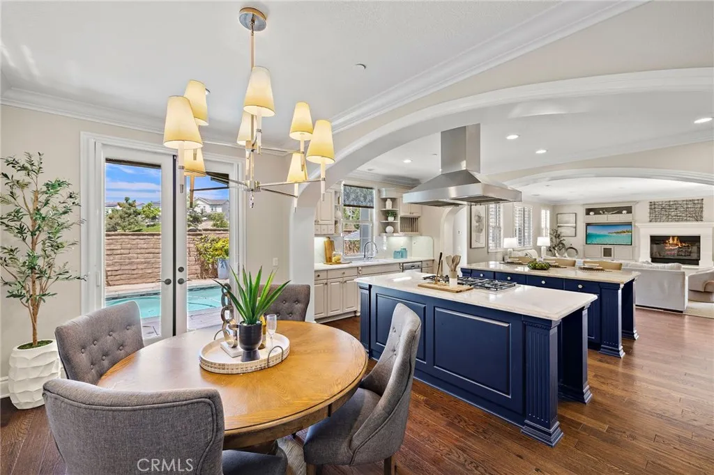 Located in the prestigious guard-gated Covenant Hills enclave of Ladera Ranch, this former model home in Montanez exemplifies luxury living. Practical updates include ownedsolar, recent whole house repipe, newer water heater, new water softener/filtration, outdoor kitchen loggia and your own private pool just in time for Summer! Set on a prime corner lot along a quiet cul-de-sac, the residence offers approximately 3,900 square feet of refined space, including 5 bedrooms and 4.5 bathroomswith a convenient main-level guest suite. Thoughtfully designed for both comfort and style, the open floorplan is filled with natural light and features rich hardwood floors, custom woodwork and lighting, a family room with built-in media center and fireplace, and multiple French doors that seamlessly connect indoor and outdoor living.The remodeled chefs kitchen is a standout, boasting dual islands with Calacatta marble countertops, high-end cabinetry, a sunny breakfast nook, and premium stainless steel appliances including a built-in refrigerator. Upstairs, the private primary suite is a serene retreat, complete with finished dual walk-in closets, a spa-inspired shower, and a jetted soaking tub.Enjoy resort-style living in your own backyard oasis with pool, spa, central courtyard, and multiple entertaining spaces. A stunning outdoor loggia is equipped with a stone fireplace, built-in BBQ, and a full gourmet kitchenperfect for year-round entertaining. Built to impress, this model home showcases custom upgrades, professional design, and one of the best locations in the neighborhood. Walk to s