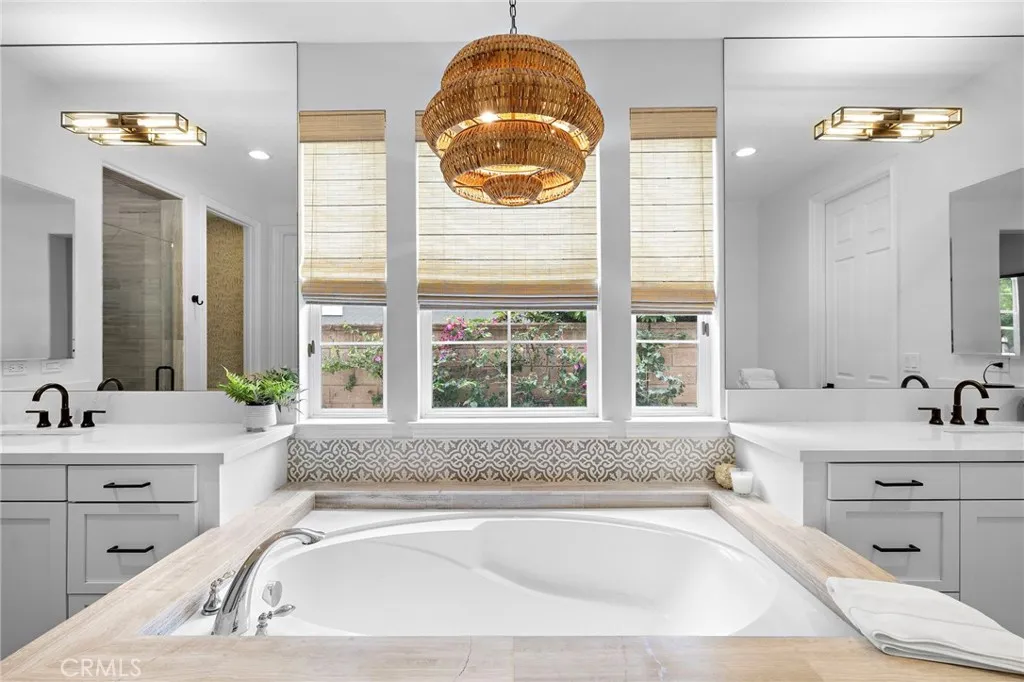Welcome to the pinnacle of resort-style living in coastal Orange County1 Drackert Lane, Ladera Ranch. Nestled at the end of a cul-de-sac in the exclusive 24-hour guard-gated community of Covenant Hills, this rare single-story, 2,751 square foot home sits on a spacious 9,790 square foot lot and was professionally redesigned in 2022 by Lauren Elder Interiors of Nashville. The open-concept floor plan offers three oversized bedroom suites (optional fourth), an office, and 3.5 bathrooms, a soaring 20-foot ceiling entrance with designer wall coverings and light fixtures, and custom white oak and shaker cabinetry throughout. The stunning kitchen and family room open to a showpiece interior wood-paneled fireplace wall and multiple French doors leading to a fully gated entertainers dream yard distinctively created by J.Armstrong Landscape Design featuring European pavers, a 14x18 louvered pergola with fans and lighting, Sonos surround sound with 12 satellites, 2 in-ground subwoofers, a 1500-watt amp, custom BBQ island with white oak cabinetry and wine fridge, TigerTurf lawn, mature olive trees, a wood-burning fireplace, and beautiful sunset views. Additional upgrades include a garage mini-split system (AC/heat), tankless water heater, PEX repipe, LVT flooring, epoxy garage floors, Vivint security system wiring, designer lighting by Currey & Co., Visual Comfort, and Circa, custom window treatments, wallpaper, barn door, remodeled laundry room with matching appliances, and updated baths. Located near Oso Grande Elementary, community clubhouse, pool, waterpark, skatepark, and trails. H