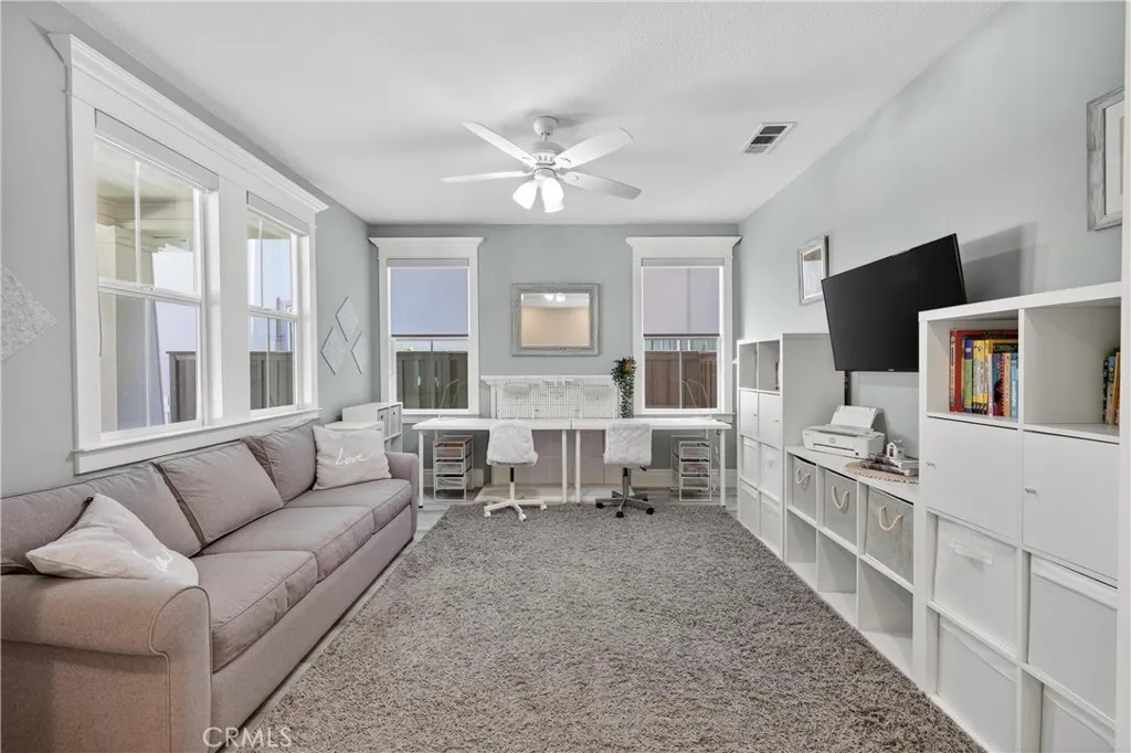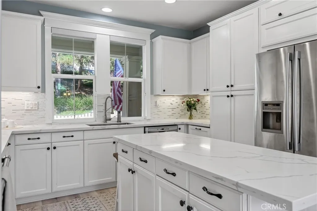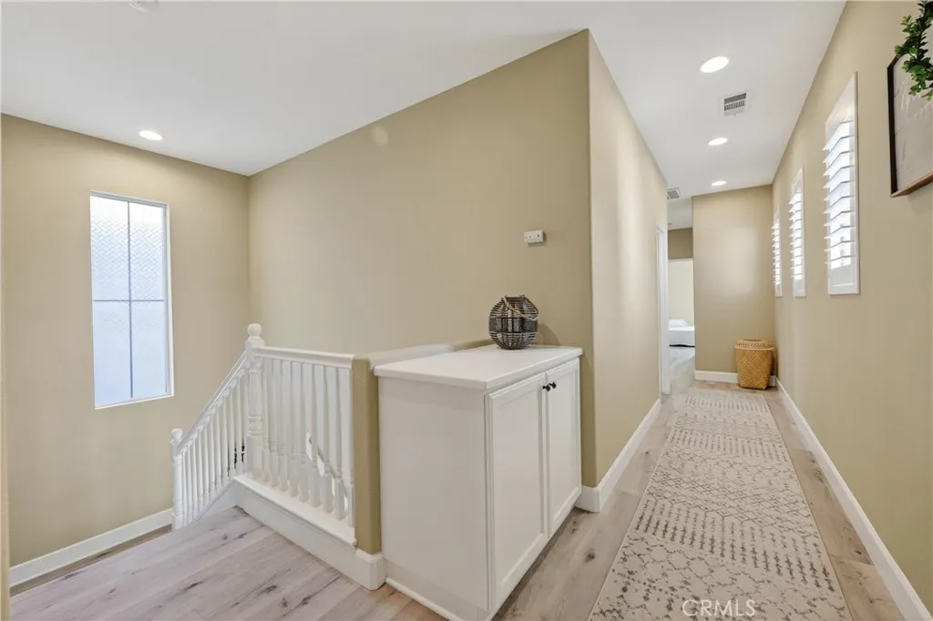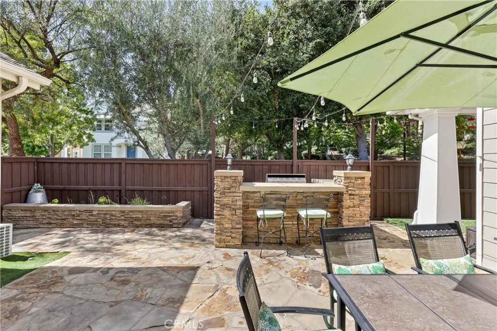 Offered in the sought-after Walden Park tract of Ladera Ranch, this highly upgraded Model 3X offers over 2,400 sq. ft. of living space on a prime corner lot. Nestled at the end of a peaceful cul-de-sac, this home features four bedrooms upstairs, a versatile casita/office with private entrance, two full baths and a guest bath. Multiple living areas include a formal dining room, separate living and family rooms, and a 2-car direct-access garage. The spacious kitchen featuring quartz countertops, a center island, wall oven, built-in microwave, and an open flow into the family room with a cozy fireplace. The luxurious primary suite boasts dual vanities, a generous walk-in closet, and a separate soaking tub and shower. Perfect for indoor/outdoor entertaining, the property offers a beautifully landscaped wrap-around yard with turf, a flagstone patio, and a built-in BBQ with stacked-stone detail. This immaculate home is loaded with recent upgrades, including: Fully paid-off 6.4 kW solar system (2023) Full-house repipe Fully paid-off water softener system Exterior recently repainted with custom shutters New gutter system Luxury Vinyl Plank (LVL) flooring throughout Kitchen remodel with quartz counters and modern finishes New double-pane windows Custom plantation shutters (upper floor) & roller blinds (lower floor) Encased windows, two fireplaces, and designer paint colors Enjoy the cost-saving benefits of owned solar panels and a paid-off water softener system, along with low-maintenance turf landscaping. All of this is just steps from tree-lined walking paths, Oso Grande Elementar