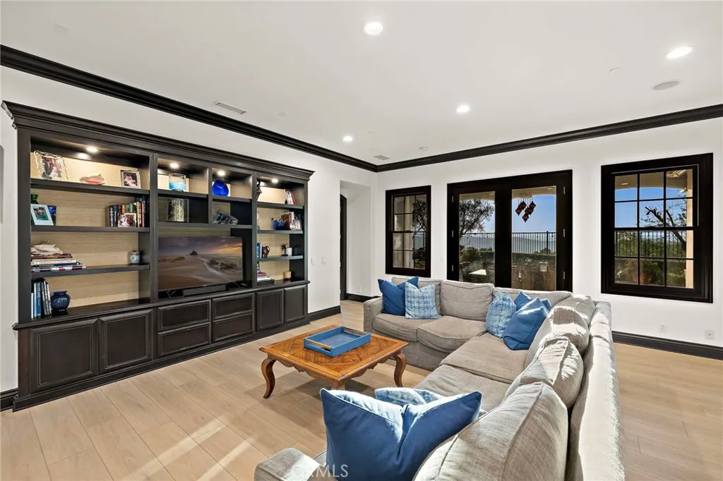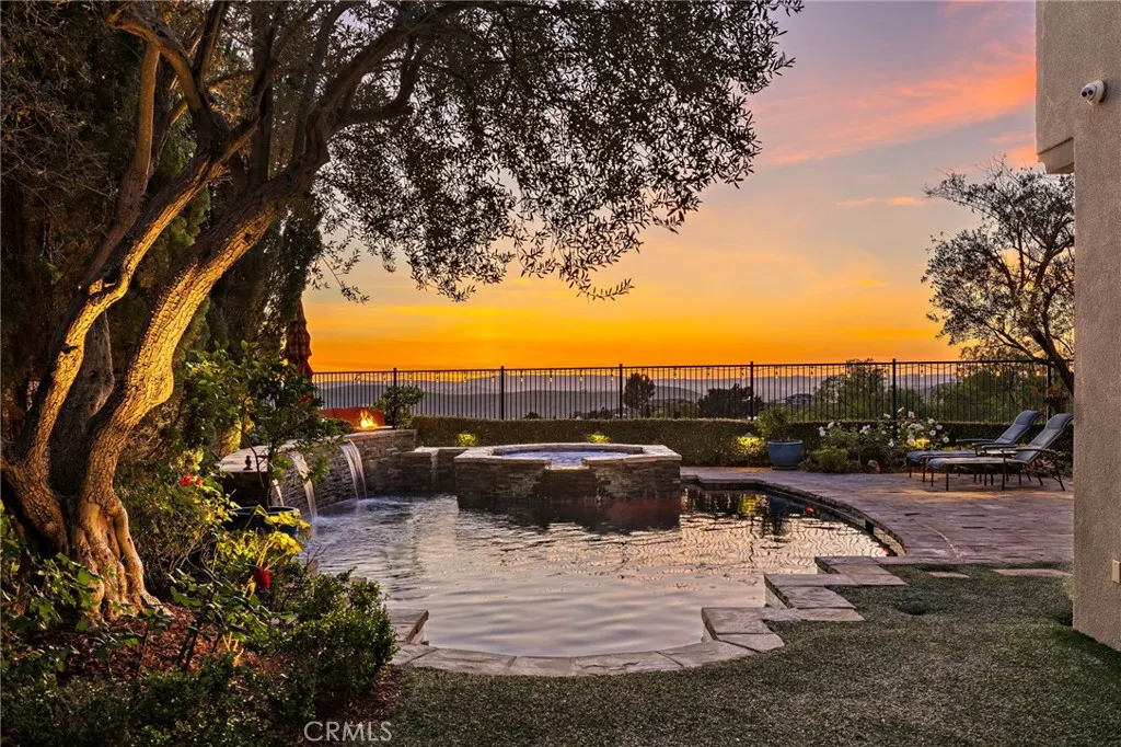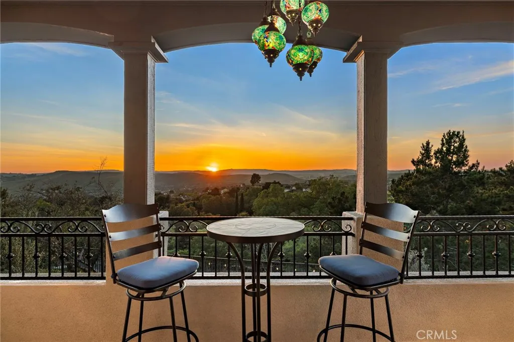Stunning view home in guard-gated Covenant Hills, ideally positioned at the end of a quiet cul-de-sac on a premium pie-shaped lot offering exceptional privacy, a large usable yard, and expansive west-facing sunset views. Spanning approximately 4,686 sq. ft. with 5 bedrooms and 5.5 baths, this beautifully upgraded and solar-equipped residence has been extensively refreshed with all new interior and exterior paint, new interior lighting, new LVP flooring, and new carpet, creating a light, modern, and truly turnkey living experience. A charming stone exterior and inviting courtyard entry lead to a formal foyer with custom glass door, opening to an expansive layout designed for both comfort and entertaining. The grand family room with soaring ceilings serves as the heart of the home, featuring a striking double-sided fireplace, stacked stone accents, and seamless connection to the outdoors. The chefs kitchen is equally impressive with a Sub-Zero 72 refrigerator, Thermador Pro range, three ovens, dual dishwashers, and generous prep space. Upstairs, the luxurious primary suite offers a private balcony to take in the breathtaking sunset views, along with a fireplace and spacious custom closet. Secondary bedrooms are all en-suite with upgraded finishes, while a large bonus room with full bath provides flexibility as a media room or guest suite. A separate office or living room with glass doors, fireplace, and courtyard access adds even more versatility. Designed for true California living, the expansive and private backyard is an entertainers dreamcomplete with a saltwater pool and