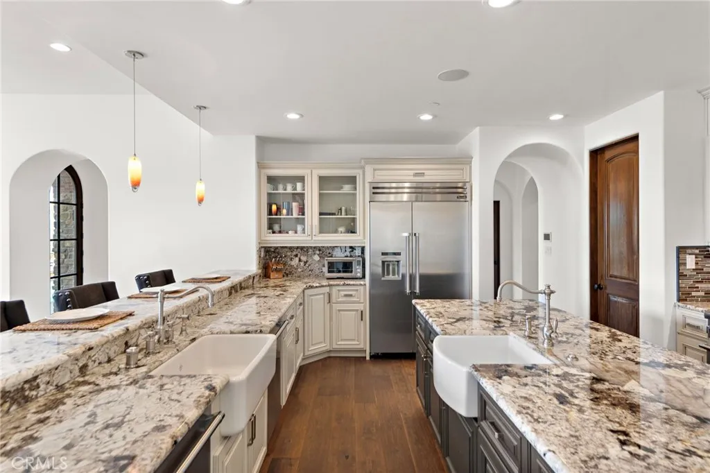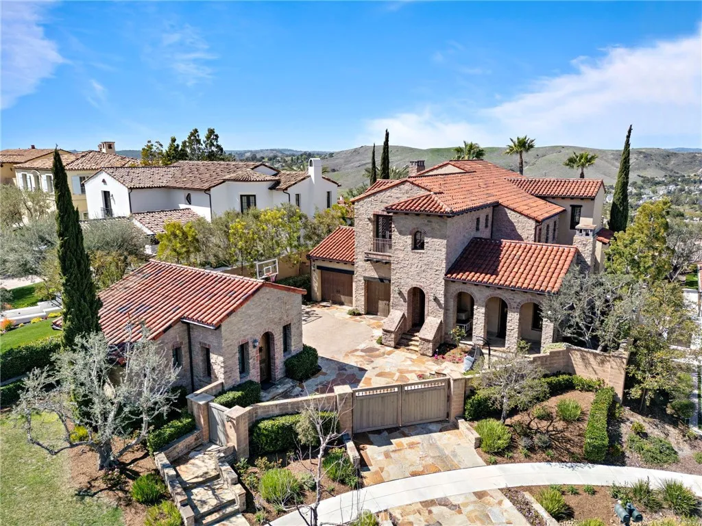 Enjoy the rewarding lifestyle you aspire to at this rare custom estate sequestered on a cul-de-sac behind the guarded gates of Covenant Hills at Ladera Ranch. Positioned on a large homesite to take full advantage of its expansive hill, valley andBoundless California Sunset Views, the distinguished five- bedroom, five- and one-half-bath residence extends across approximately 5200 square feet.Nurtured to Perfection Through Imagination & Appointment, Come Marvel as You Step Back in Time Through the Iron Gates to Quarried-Rock Walkways Lined with Olive and Citrus Trees & Tranquil Water Features. Unparalleled Custom Amenities: 5 En-Suite Bedrooms, Separate Detached En-Suite Casita, Exquisite Great Room Overflowing to Brick & Stone Archways Accented w/ Sand Blasted Wood Beam Loggias, Bi-Folding Doors to Seamless In-Door / Out-Door California Living, Raised Jacuzzi w/ Tahitian Plastered Salt Water Pool, Superb Kitchen w/ Dual Farm Sinks & Dishwashers, Custom Fit Thermador 48" Refrigeration & Ovens, Generous Island & Hand Finished Cabinetry, Quarried Rock Bar Open to Amazing Great Room Accented w/ Built-In Book Case, Distressed Wood Floors Throughout, 8 Zone Surround Sound w/ Whole House Monitoring & Single App Control & Warming Fireplace. Primary Suite w/ French Door Walk-Out Patio Finished w/ Quartz & Iron Rails, Primary Bath w/ Unsurpassed Limestone Finishes & Luxe Dual Motor Jacuzzi Tub, Secondary Bedrooms Each Outfitted w/ Quaint Balconies & Finished Closets. Don't Miss This Opportunity to Embrace a Rare CA Lifestyle In Gated Covenant Hills.
