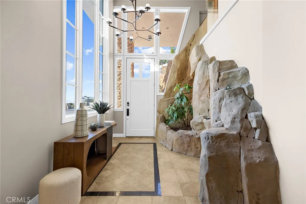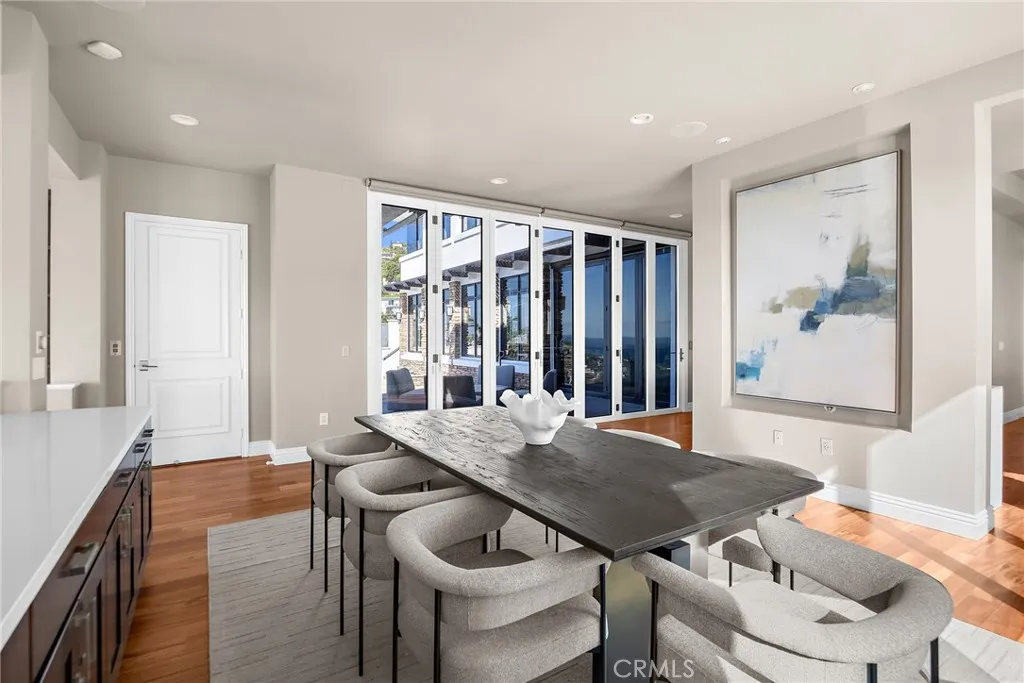 Set above one of Laguna Beachs most iconic stretches of coastline, this rare estate offers sweeping, unobstructed panoramic views of Catalina Island and Main Beach. Positioned on a gated one-third-acre lot, the residence stands with commanding presence and spans more than 6,200 square feet of refined living space, thoughtfully designed to frame the Pacific at every turn. An infinity-edge pool appears to merge seamlessly with the ocean, complemented by sculpted hardscape, curated coastal landscaping, a beautifully appointed patio with a built-in BBQ grill overlooking the ocean and South Laguna Beach, a generously sized and meticulously maintained backyard ideal for pets or gardening, a spacious three-car garage with EV chargers and refined ocean-view windows, and an expansive six-car motor court designed for the discerning automotive enthusiast. Inside, architectural sophistication meets custom craftsmanship. Vaulted ceilings elevate the sense of scale, while the gourmet chefs kitchen showcases premium finishes and a striking Madagascar-quarried stone island. A glass elevator delivers ocean views on every ride. Multi-fold panel doors open seamlessly to the pool area and outdoor fireplace, creating a true indoor-outdoor living experience. Brazilian cherry wood flooring, a dedicated home theater engineered for an immersive entertainment experience, and fireplaces in the living room, primary suite, and terrace enhance the homes warmth and character. Four generous bedroom suites with ensuite bathrooms provide comfort and flexibility, ideal for guests or remote work. Smart-home a