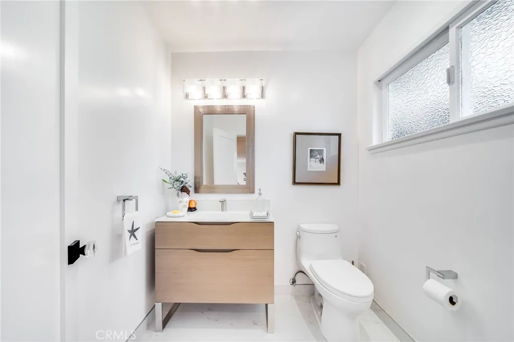 THERE IS ALWAYS A CHECKLIST TO LIVE THE DREAM: a location on the ocean side of Pacific Coast Highway, in desirable North Laguna Beach, close to the beach and town, an ocean view, easy single-level living, and a big plus is the home being updated and ready for move-in. The conversation that follows is always about trade-offs and why this is an impossible checklist until now. We present to you 1570 Via Corsica an utterly charming, wonderfully updated, single-level ocean-view home located at the end of a small cul-de-sac on the last street before the oceanfront, with only four homes on the street, all in desirable North Laguna. Surrounded by homes that are many multiples in price, 1570 Via Corsica sits on a prominent, mostly flat, larger parcel with terrific front and rear space for outdoor living in a neighborhood where very few homes come to market. A classic mid-century rancher, the home has been reimagined and updated for modern living. The gorgeous kitchen, designed with a focus on functionality, is replete with top-shelf Wolf, Bosch, and Thermador appliances. The floor plan flows effortlessly from the ocean-view living room through the dining room to the expansive kitchen. Even with the thorough update, care was taken to preserve the character of the house while creating a delightful, modern feel: a new Dutch door welcomes you into the home from the cozy covered front porch; original oak floors gleam; two fireplaces warm both the living room and dining room; interior doors feature stunning contemporary classic-style hardware throughout; and the wonderfully updated baths