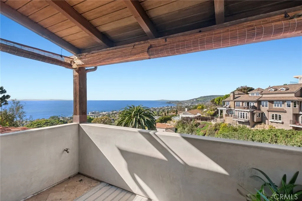 Located in one of Laguna Beachs most coveted neighborhoods, this custom residence offers breathtaking ocean views from every room. It's elevated setting welcomes panoramic views that extend along the coastline and toward Catalina Island, showcasing enchanting sunsets and thousands of sparkling city lights, creating a truly memorable backdrop. The home spans approximately 2,926 square feet and features three bedrooms and two-and-a-half baths, thoughtfully arranged within a generous, open floor plan. An elevator services the home, providing convenient access between levels. The main level showcases a spectacular great room with priceless ocean views, where a fireplace-warmed living area with wood-beamed vaulted ceilings, multi-paned windows, and French doors creates a light-filled, airy ambiance. The bespoke kitchen is anchored by a large island and appointed with custom wood cabinetry, polished Carrara marble countertops, and top-tier appliances, all framed by windows overlooking the Pacific Ocean. The kitchen opens seamlessly to an ocean-view deck with a built-in BBQ, extending the living and entertaining spaces for both intimate relaxation and open-air gatherings. The living, dining, and kitchen areas are unified by abundant natural light and uninterrupted ocean vistas, creating an inviting setting for everyday living and memorable occasions alike. The primary suite serves as a private retreat, framed by multiple ocean-view windows and opening to a large covered balcony with mesmerizing views. From here, enjoy direct access to a terraced yard featuring a fire pit, an ideal