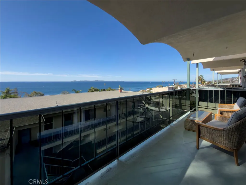 SPECTACULAR and STUNNING OCEAN VIEWS greet you as you enter this top-floor "Penthouse" condominium situated in prime ocean-close Woods Cove area of Laguna Beach. This superb COASTAL RETREAT has been recently remodeled and renovated with high quality wood-look composite flooring, Milgard windows and slider (earthquake proof and lifetime warranty), top quality Hunter Douglas blinds with light-blocking in bedrooms and light filtering in living/dining areas, large wall mirror in dining area, all-new kitchen by IKEA including cabinets, counter tops, dishwasher, stove and vent plus refrigerator and beautiful designer Blue Japanese fired Raku backsplash. Rounding out the full kitchen remodel, the kitchen plumbing has been replaced and a new garbage disposal. The electrical has been upgraded throughout the unit and a new hot water heater installed. There are new ceiling fans and doors to each bedroom plus custom built-in closets and mirror fronts and new ceiling lights have been installed throughout. The bathroom includes a designer-look complete with new faucet and new shower attachment, vanity and toilet. The ceilings have been refinished and the interior features new highest quality LVOC paint. The expansive deck highlights top-quality privacy glass in balcony seating area and new marine paint on deck floor and railings. A Ring Camera doorbell has been installed and a keypad door lock with key option. The covered carport, nearby and below, includes a storage cabinet. The spacious living room and dining area is filled with natural light and opens to the deck for seamless indoor/o