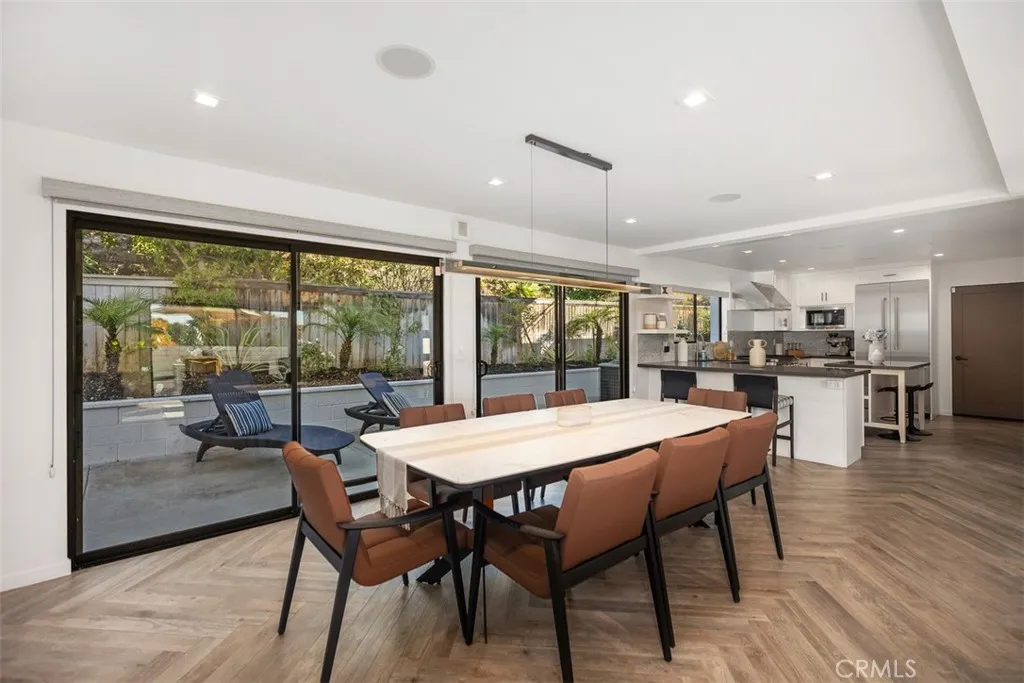 Welcome to 2870 Zell Drive, a beautifully detailed coastal retreat in Laguna Beachs highly desired Top of the World neighborhood. Positioned to capture ocean, Catalina, and sunset views, this home offers the perfect blend of relaxed comfort and timeless charm. The main level features an open-concept layout with chevron-patterned hardwood floors, a statement fireplace, and a floor-to-ceiling glass-enclosed wine display. The chefs kitchen includes Thermador stainless-steel appliances, a built-in refrigerator, walk-in pantry, and a center island, all opening to the dinning and family room plus a spacious front patio ideal for indoor-outdoor entertaining. Upstairs, the primary suite showcases ocean and sunset views, a private balcony, and a spa-inspired bath with a free-standing soaking tub and designer finishes. Two additional bedrooms and a full bath complete the second level, along with an expansive ocean-view deck featuring a built-in wet bar and generous lounge space for outdoor dining and enjoying coastal sunsets. Located minutes from Lagunas award-winning schools, hiking trails, and world-class beaches, this residence captures the essence of modern coastal living in one of the areas most sought-after enclaves.