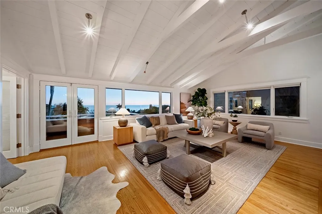 This curated home with casual elegance captures sweeping ocean and Catalina views from nearly every room, tucked into the highly desired Tree Streets of North Laguna. Thoughtfully designed for effortless coastal living, the residence offers three ensuite bedrooms and a floor plan that seamlessly blends indoor comfort with outdoor relaxation. The main living room welcomes you with its soaring wood-beamed ceilings, rich oak flooring, and a classic floor-to-ceiling brick fireplace. Oversized windows frame the postcard-worthy ocean vistas, filling the space with natural light and a sense of calm. Just beyond, an expansive view terrace becomes your front-row seat for unforgettable sunsets and slow mornings with coffee overlooking the coastline. The kitchen and dining areas open gracefully to the living room, creating an ideal flow for everyday living and entertaining. In the kitchen, youll find Viking range, high-end stainless appliances, a breakfast bar, a second brick fireplace, and vaulted ceilings with a skylight that bathes the room in soft, coastal light. French doors lead outside to a terraced garden retreat, multiple sitting areas, mature lemon, orange, olive, and magnolia trees, and an elevated view deck offering yet another incredible vantage point to take in the serene ocean views making every sunrise and sunset a private escape. Perfectly positioned in North Laguna, youre just blocks from some of Lagunas most iconic beaches, local galleries, boutique shopping, resorts and dining. This home captures the essence of the North Laguna lifestyle, relaxed, refined, and surr