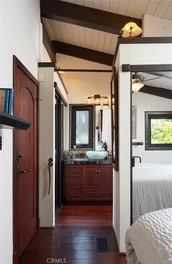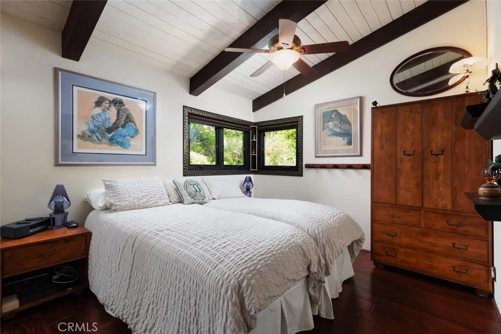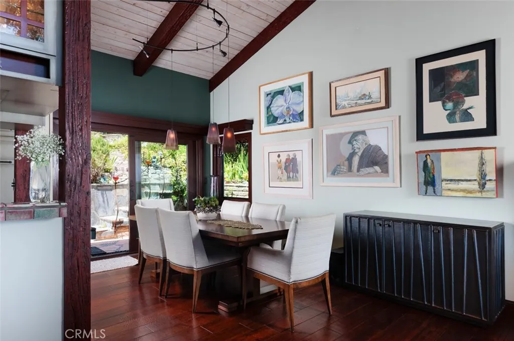 Tucked along one of North Laguna Beachs most picturesque streets, 530 High Drive is a study in thoughtful design, timeless materials, and bespoke coastal charm. With sweeping ocean and Catalina Island views from nearly every roomand a garden landscape that feels curated rather than plantedthis coastal residence balances architectural integrity with relaxed elegance, all while presenting an exceptional opportunity for future expansion. The homes exteriora patchwork of earth-toned shingles, copper accents, custom handmade fixtures by local artisans, and lush botanicalshints at what lies within: a series of warm, light-filled rooms where craftsmanship takes center stage. Vaulted, beamed ceilings and real hardwood floors lend a sense of quiet luxury, while walls of windows draw the eye toward the Pacific. At the heart of the home, a gracious living room is anchored by a Franklin stove wood-burning fireplace and opens through sliding glass doors to a large ocean-facing deck designed for sunset viewing and outdoor entertaining. The adjacent kitchen is both refined and personal, featuring custom cabinetry and copper detailing. The private primary suite is tucked into the rear of the home and enjoys tranquil garden vistas, while a west-facing secondary bedroom captures cinematic sunsets and features a cozy loft spaceperfect for guests or creative retreat. A lower-level bonus room with office area offers versatile utility, easily adaptable as a studio or gym. An attached two-car garage with direct interior accessa true rarity in Laguna Beachadds both convenience and additional stora