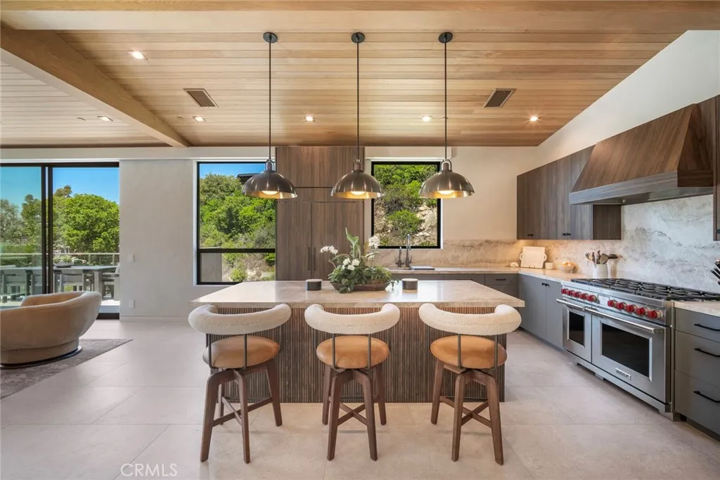 Brand New Contemporary Coastal Retreat with Ocean & Canyon Views Completed in 2024, this striking contemporary coastal masterpiece blends style, sophistication, and seaside charm. Situated in Laguna Beachs coveted Upper Diamond neighborhood, this approx. 2,500 sq ft, 3-bedroom, 3.5-bath architectural gem rests on a generous 8,000 sq ft lot, capturing ocean and canyon vistas from a serene, private settingjust minutes from the sand, acclaimed dining, and art galleries of Laguna Village. Inside, sunlit open spaces showcase wide-plank white oak and designer tile flooring, with soothing oyster-hued Venetian plaster walls that complement stone counters and sleek European-style cabinetry. The state-of-the-art chefs kitchen boasts a Wolf 8-burner range with dual ovens, 48" Sub-Zero refrigerator and freezer, additional beverage Sub-Zero in the island, Miele dishwasher, built-in espresso/coffee maker, Miele speed oven/microwave, Sub-Zero wine cabinet, and Scotsman ice makerevery culinary luxury at your fingertips. The primary suite is a true sanctuary, featuring a private terrace with tranquil views, a spa-inspired bath, and a personal wet bar with Sub-Zero refrigerator. Thoughtful upgrades include solar panels, energy-efficient windows and doors, and an upgraded HVAC system for year-round comfort. A 2-car garage plus dedicated golf cart garage provide ample parking and storage. Outdoor living shines with a resort-style backyard, complete with a sparkling dipping pool and spa, spacious terraces, and an outdoor California room with privacy shades, built-in heaters, and a ceiling fanpe