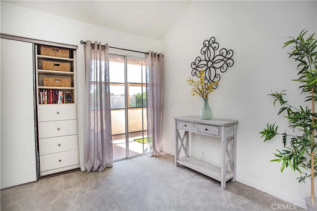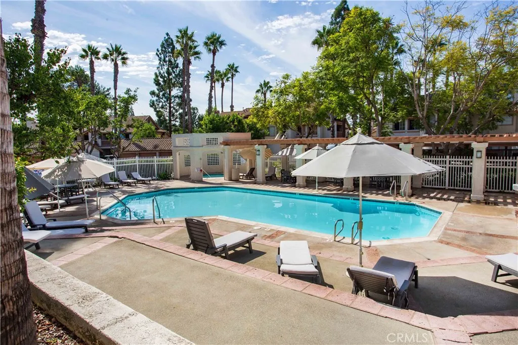 Incredible location just 8 miles from the ocean! A wonderful opportunity to own this remodeled upstairs 2 bedroom condo with expansive views! Beautiful new laminate wood flooring throughout, plantation shutters and a fireplace the main living areas. Spacious kitchen features vaulted ceilings and granite countertops with breakfast bar. Spacious dining area with designer lighting. Primary bedroom features a walk in closet and separate make up vanity. Indoor washer/dryer included. There is a designated covered carport just across from the unit and a community pool, spa and playground along with a large park with plenty of grass and walking trails.