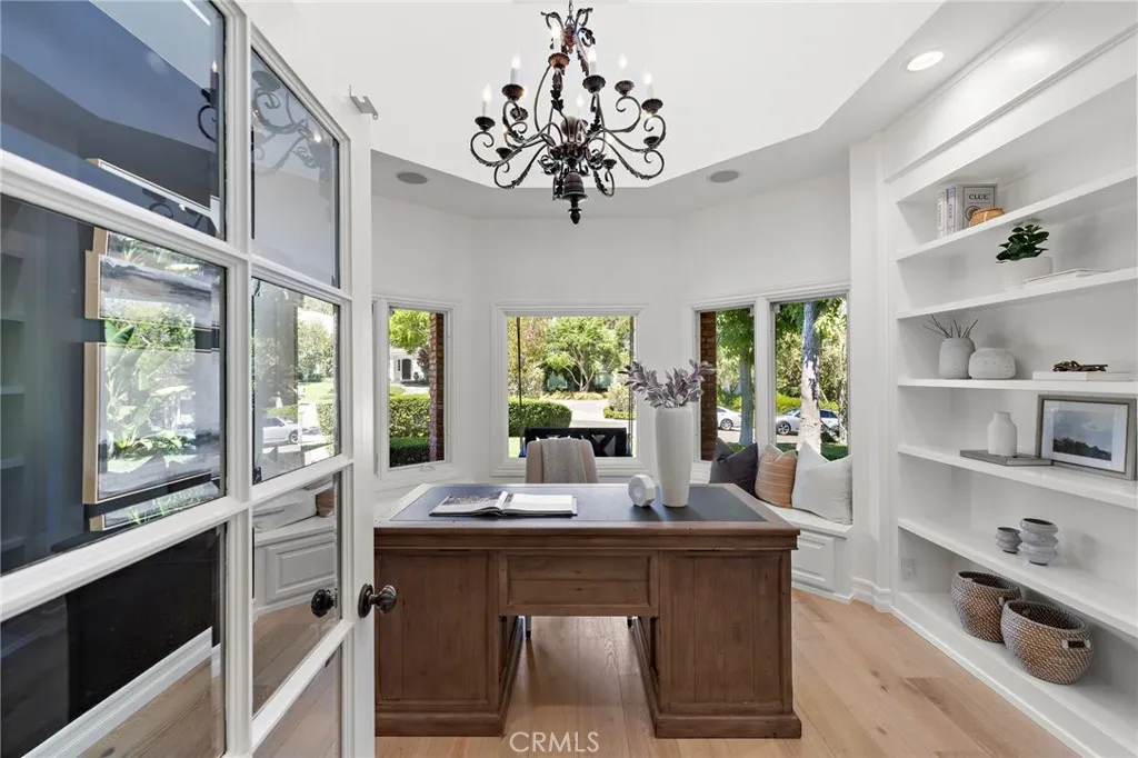 Luxury reimagined at an irresistible price!! Discover elevated living in Nellie Gail Ranch, renowned for its sprawling estates and equestrian charm. This RENOVATED 7,110 Sq Ft ESTATE offers 6 bedrooms, a bonus room, and 4.5 bathrooms, blending MODERN FINISHES and timeless elegance. A grand double-height foyer welcomes you into a light-filled, open yet intimate layout ideal for both entertaining and everyday living. The main level features a SLEEK CONTEMPORARY KITCHEN, breakfast nook with views of the pool plus a MAGAZINE-WORTHY formal dining room with designer wallpaper, classic raised panel wainscoting and dramatic chandelier. The spacious family room connects to a sunlit sitting area, game room, and private office, with flexible options for a formal living space or childrens library. A separate guest suite on the main floor provides privacy for visitors or multi-generational living. Upstairs, 5 generously sized bedrooms include an IMPRESSIVE PRIMARY SUITE with a fireplace, 2 sitting areas, balcony, and a REMODELED SPA-INSPIRED bathroom with dual vanities, soaking tub, oversized shower, and custom walk-in closet. An expansive bonus room offers versatility as a 7th bedroom or media room. Set on nearly a 48,000 Sq Ft parcel, this PRIVATE BACKYARD OASIS includes a sparkling SALT-WATER POOL, SPA, SPORTS COURT, fireplace, built-in BBQ, covered patio wired for TV, a fruit orchard, low maintenance turf, separate dog yard, and backs to one of Nellie Gails numerous horse trails. NGRs HOA provides access to a community clubhouse, a swimming pool, multiple pickleball and tennis court
