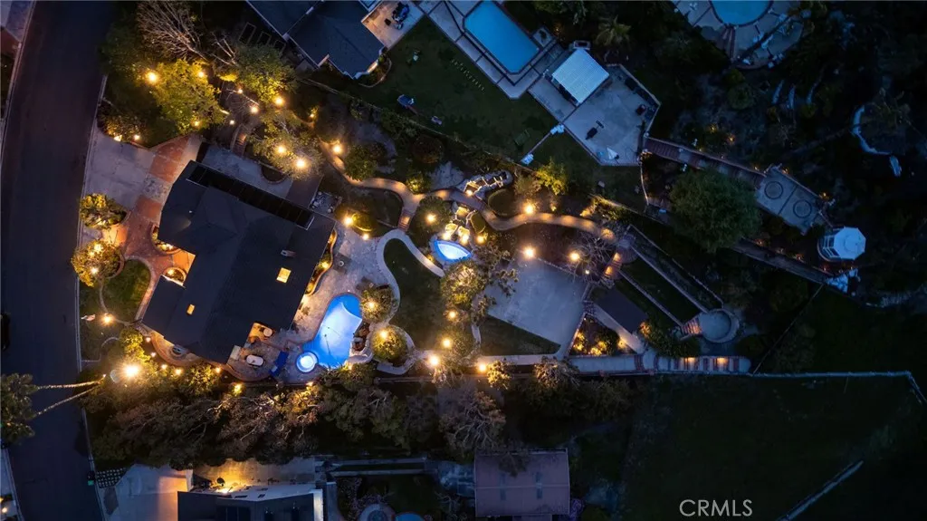 Enjoy a rare combination of resort-style living and prime cul-de-sac location at this highly upgraded, equestrian-zoned home in Nellie Gail Ranch. Situated on a 0.65-acre flat, usable lot surrounded with mountain and hillside views, this turnkey property is designed inside and out for the ultimate in relaxation and entertaining. Inside, over 4,000 sq ft of light-filled living space features grand proportions and thoughtful updates. The main level welcomes with travertine floors and a foyer that flows into the living room with vaulted two-story ceilings, skylights, and a floor-to-ceiling fireplace. Modern accents are featured throughout, from custom lighting and chandeliers to electronic shades, with a wall of windows and sliding doors connecting living spaces to the backyard. The remodeled kitchen showcases custom cabinetry, quartz countertops, tile backsplash, stainless appliances (including double wall ovens and built-in Miele coffee/espresso machine), and opens to both formal and casual eat-in dining spaces. The family room features a second fireplace and a built-in bar, while multiple access points seamlessly transition outdoors. A main-level bedroom suite with a private bath and backyard views, a flexible office or bedroom, and laundry with upgraded front-loaders complete this level. Upstairs, the primary suite is a private retreat with vaulted ceilings, skylights, sitting area with fireplace, and a renovated spa-like bath featuring a jacuzzi tub, dual vanity, and oversized walk-in shower. Also upstairs are a loft space and built-in office area, two secondary bedrooms