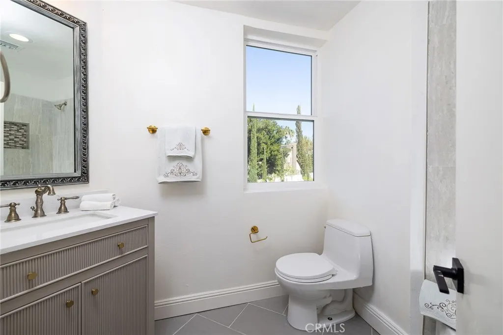 Newly-remodeled, Nellie Gail Ranch view home with private outdoor living. Enjoy sweeping mountain vistas from this three-level residence with rooftop deck, set on roughly 1/4 acre of flat, usable land. A generous driveway leads to a large 3-car garage and manicured landscaping, making for a welcoming curb appeal. Inside, double entry doors open to grand interior proportions with vaulted ceilings and abundant natural light. The living room has dramatic two-story ceilings and a gas fireplace, and the dining area connects to the inviting patio through double French doors. The chefs kitchen is equipped with Thermador double ovens, a SubZero refrigerator, granite countertops, island, and pantry storage. The generous family room features a second gas fireplace, large windows, and direct access to the backyard, continuing the home's indoor-outdoor design. Fresh paint, travertine flooring, convenient powder room, downstairs office, and designated laundry room with sliding barn door complete the main floor. With six total bedrooms and four full baths, the upgraded home comfortably accommodates family and guests. On the top level, you will find the expansive and private primary suite surrounded by spectacular views and has private access to a large balcony. The primary bath has a chic soaking tub, double vanity, shower, and a spacious walk-in closet with natural light. The private pool-size backyard includes a patio and lawn surrounded by lush, mature landscaping with Italian cypress and palm trees. Exterior stairs provide direct access to the upper floors, and the rooftop deck deliv