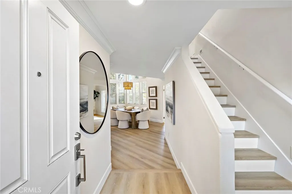 Situated in the highly desirable community of Bear Brand, within the gated enclave of Cameray Point, this recently upgraded 3-bedroom, 3-bathroom townhome is move-in ready. The moment you enter, youre welcomed by soaring ceilings and abundant natural light streaming through multiple windows and the gorgeous light floors. The spacious living room features a beautiful, cozy fireplace that creates an inviting atmosphere. The newly remodeled gourmet kitchen offers stainless steel appliances, stunning quartz countertops, and ample storage. It opens seamlessly to the formal dining area, as well as a conveniently located downstairs bedroom and full bath. Upstairs, the primary suite includes dual vanities, a walk-in closet, a separate shower, and a relaxing soaking tub. The second level also offers an upstairs laundry area and an additional bedroom with its own ensuite bathroom. The large two-car garage with direct access provides generous storage options. Ideally located near shopping, movie theaters, restaurants, beaches, and the Dana Point Harbor, this home offers both comfort and convenience.