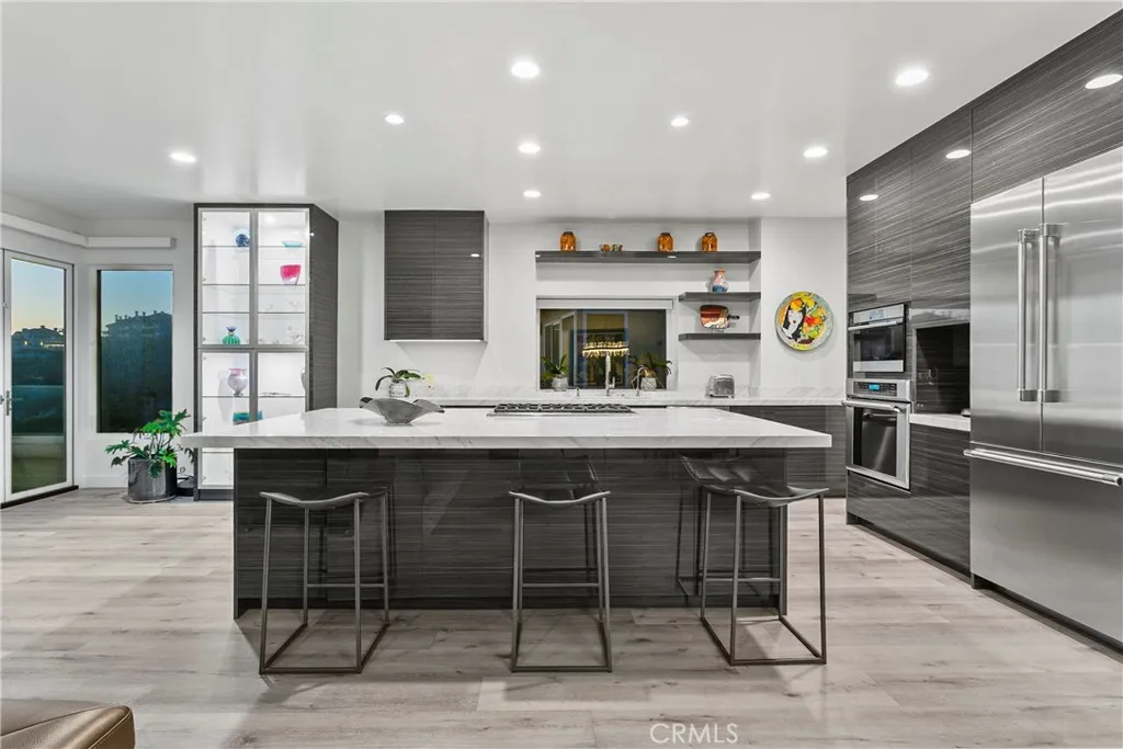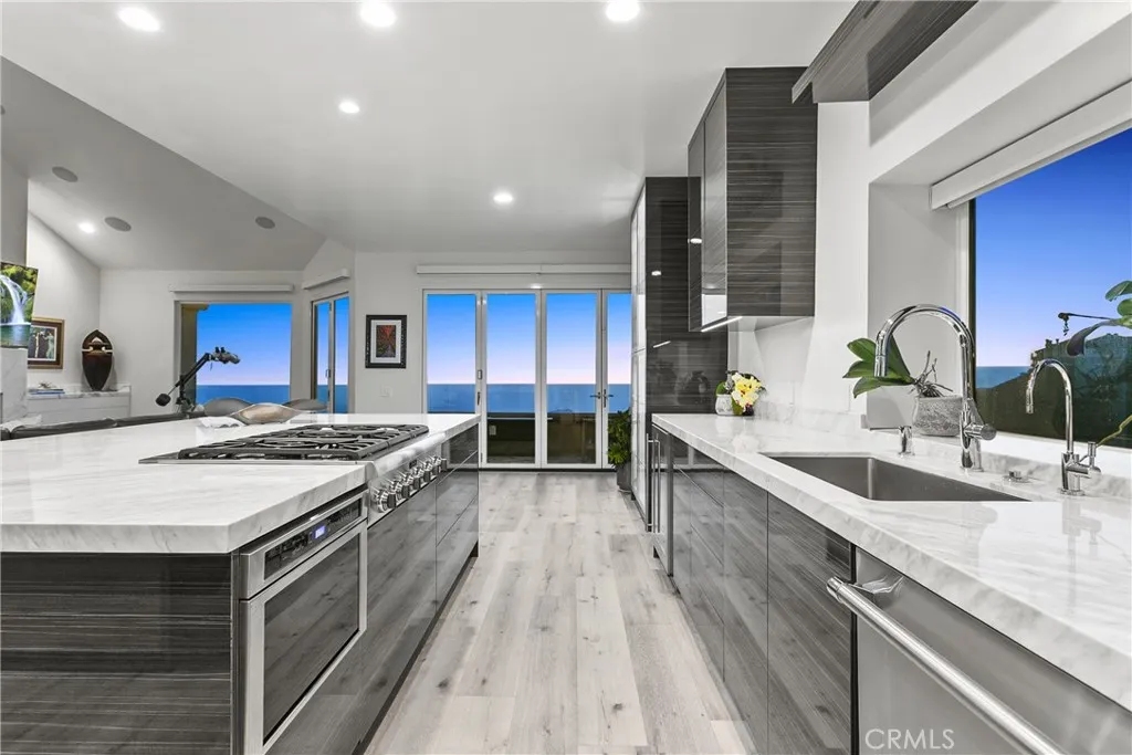Experience unobstructed panoramic ocean and coastline views , Catalina Island, and sunset views from this luxurious, contemporary Mediterranean home nestled in the prestigious gated community of Laguna Sur. Oversize glass doors frame the dramatic coastal vistas and infuse the open-concept layout with an abundance of natural light and help this entertainer's delight blend seamlessly with the outdoors. Modified from the original builder floorplan to create an open-concept space, the chefs kitchen opens to the living area and is sure to impress with a 6-burner stove, marble countertops, soft-close custom cabinetry, a wine refrigerator in the kitchen and a walk-in pantry. Enjoy luxury, innovation throughout with soaring ceilings, designer finishes, and smart home features including automation, zoned HVAC with humidity control, a tankless water heater, and energy-efficient appliances. The tranquil primary suite is also modified to create an open concept space, offering a spa-like escape with over-sized custom shower including Mr. Steam steam shower, dual massage showerheads plus rain showerhead, a jetted BainUltra tub, and a generous walk-in closet. Additional features include custom built-ins, whole-home data wiring, integrated surround sound, a central vacuum system, a loft and additional attic and a TONAL Smart Home Gym. Residents of Laguna Sur enjoy exclusive resort-style amenities including two pools, a spa, and 2 tennis/pickleball courts. This prime coastal location is just minutes from the Waldorf Astoria and Ritz-Carlton resorts, the El Niguel Country Club, the charm of