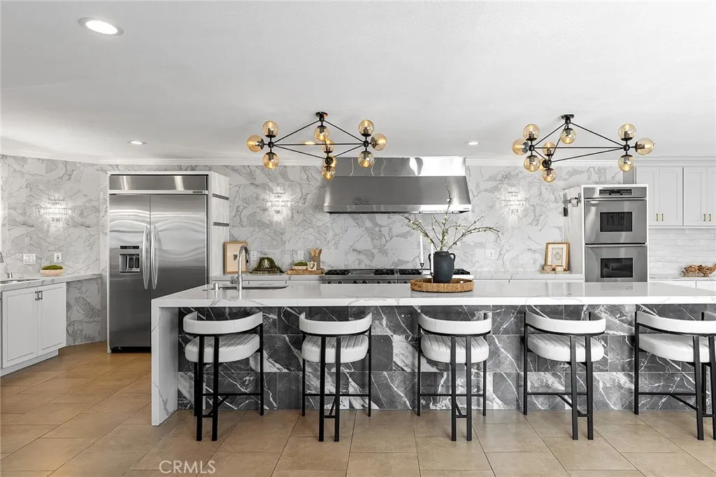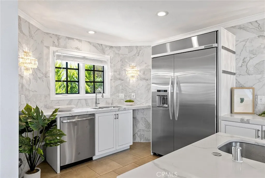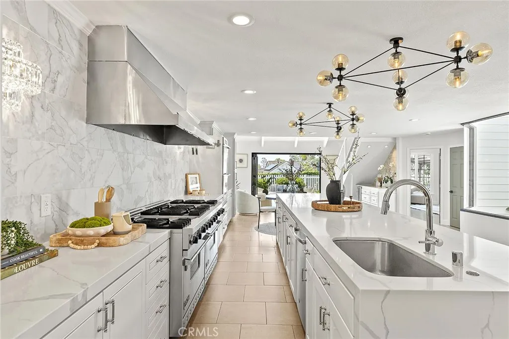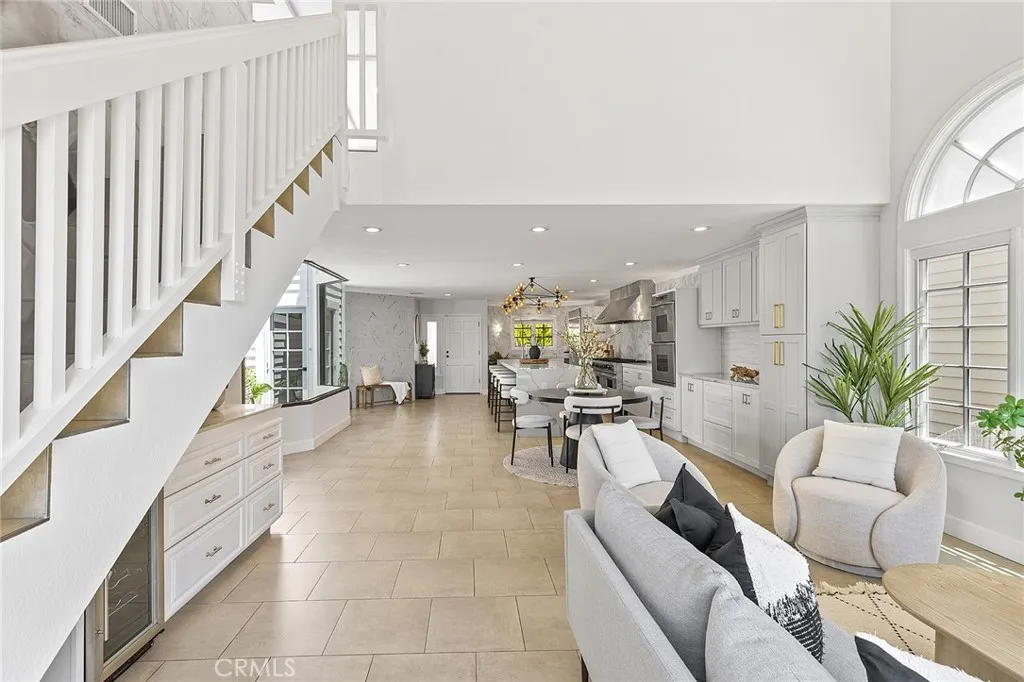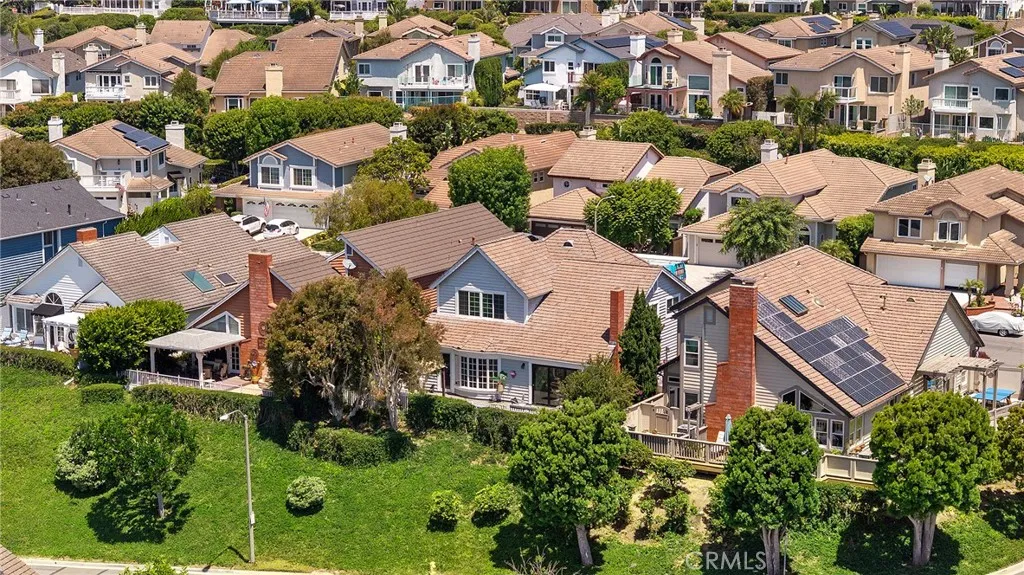 Hidden away in the desired Niguel Coast area, this highly-upgraded home is sure to impress! Two miles from Salt Creek Beach, this beautifully-remodeled 5-bed (+bonus room), 3.5-bath residence offers the perfect blend of coastal living & modern comfort. Upon arrival, high pride of ownership is undeniable with whitewashed stone & artistic landscaping. Inside, its apparent the home has been remodeled top-to-bottom. A stunning kitchen invites you inside with an 15ft waterfall island & comfortable bar seating for eight. Dual Viking ranges, four ovens, two sinks & dishwashers, ample custom cabinetry, all finished with accent tile creates a very chic space. An open atrium allows natural light to flood into the great room. The kitchen, dining & living all share one open, seamless space. Soaring beamed-ceilings in the living room create a coastal feel warmed by a gas fireplace. The great room flows seamlessly through massive LaCantina bi-folding doors to the rear yard featuring new low-maintenance turf, two spacious embossed-concrete patios, & shade covering - very private & open on the ridge with no one behind. Off the great room, the first-level primary offers major space with a coved ceiling, beautiful bay window, French door to yard, spa-like bathroom & soaking tub, privacy toilet, dual sinks, granite counters, vanity, walk-in closet & shower - all with major natural light. The dedicated laundry room (direct 2-car garage access), powder bath, & a rare downstairs primary suite complete the lower level. Up the tiled staircase with posh accent tile offers four additional bedrooms (