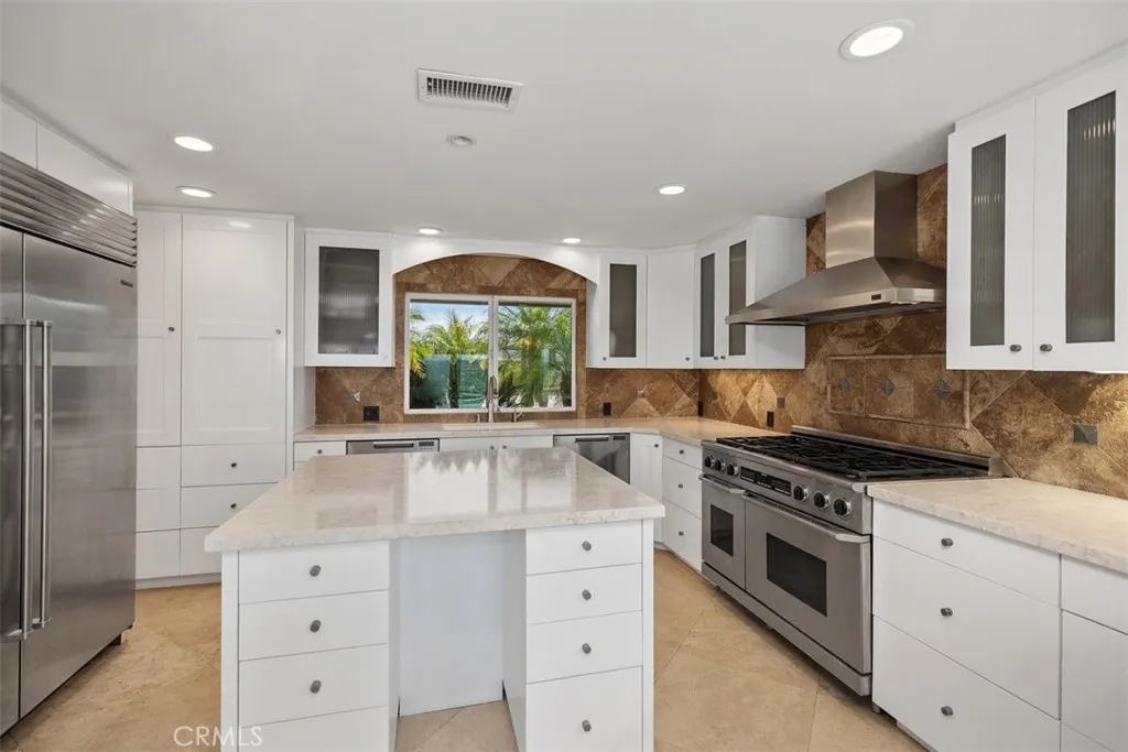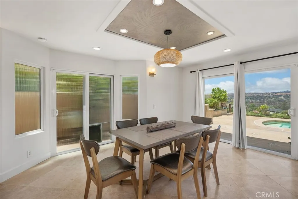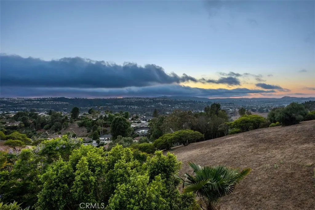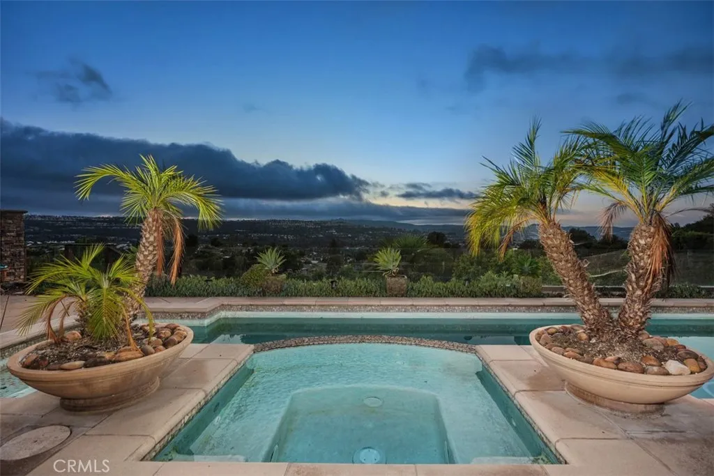 Where timeless design meets breathtaking natural panoramic views that will finally take you to YOUR dream home! Set on an expansive lot in the heart of Laguna Niguel, in a sought after neighborhood with NO HOA, this exceptional 5 bedrooms/4 bathrooms has open space with long sight lines to hills, mountains, and spectacular city lights at night. Inside, travertine and wood floors, solid-core doors, Milgard double-pane windows, recessed lighting, and multiple skylights create crisp, all-day light. The gourmet kitchen is a chef's dream come true, custom cabinetry newly refinished, six-burner range, Sub-Zero fridge, breakfast bar, and a custom desk nook that flows seamlessly to the living room and dining spaces for refined entertaining. A much sought after main-level bedroom/office steps out into the manicured private yard. The downstairs bathroom offers indoor/outdoor access creating convenience after a sun soaked afternoon. From the custom pool and spa to an outdoor shower, every meticulous detail was designed for coastal living. Multiple tiers of landscaping of fruit trees and jacarandas frame this majestic backdrop. Built for convenience, this home features two laundry areas upstairs and downstairs to keep life moving with ease. Upstairs, you will find four additional bedrooms include an inviting primary en suite with walk-in closet opening to a separate retreat area showcasing stunning sunset views. The primary includes tub, shower, and dual vanities. Along with three more spacious bedrooms with two offering picturesque mountain views you will be in awe of. The fourth bedr