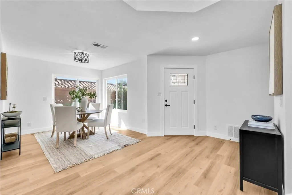 Welcome to your completely reimagined home in the coveted Rancho Niguel community, where sweeping foothill views, unmatched privacy, and modern luxury come together in perfect harmony. Fully renovated from top to bottom, this rare offering sits with no home in front or behind, creating an exceptional sense of openness and tranquility. A gated courtyard entry welcomes you into a perfectly sun-drenched interior with vaulted ceilings, new finishes, and effortless indoor-outdoor flow. The spacious living room features a newly tiled herringbone dual-sided fireplace, two-story ceilings, and sliders that open directly to the meticulously landscaped rear yard with panoramic foothill views. The formal dining room and upgraded kitchen create the perfect setting for both intimate meals and memorable entertaining. A charming breakfast nook, warmed by the shared fireplace, invites you to slow down and savor peaceful morning vistas. Upstairs, the serene primary suite offers breathtaking views, an en-suite bath, dual-sink vanity, walk-in closet, and plush new carpet. Two additional bedrooms and a sleek, modern hall bath complete the level. Every detail has been refreshed, including new flooring, new paint inside and out, new vinyl windows and sliders, a newly poured driveway and patio, landscaping, and a remodeled kitchen and bathrooms, along with a newer HVAC system to ensure year-round comfort. Residents of Rancho Niguel enjoy exclusive membership to The Club, offering resort-style amenities including pools, pickleball and tennis courts, racquetball, sports courts, a fitness center, pic
