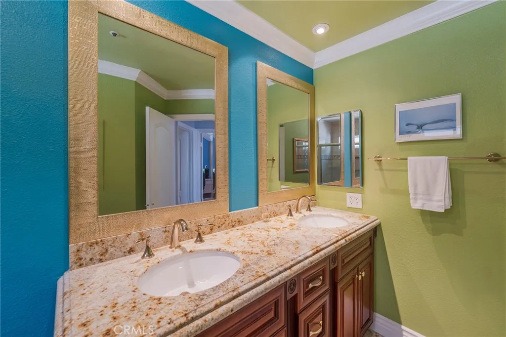 A Private View-Filled Retreat in Laguna Crest Estates with a huge backyard. Tucked away on a quiet cul-de-sac, this exceptional 4-bedroom, 3-bathroom home offers the perfect blend of privacy, space, and panoramic views. The oversized 3-car garage and expansive driveway provide rare flexibilityideal boats, or hosting guests with ease. Step through elegant double doors into a light-filled interior where comfort meets sophistication. Downstairs features a full bedroom and bath, perfect for guests or multi-generational living. The formal living room, anchored by a cozy fireplace, flows into a dramatic dining area with direct access to the backyard oasiswhere unobstructed vistas stretch endlessly. The chefs kitchen is a true centerpiece, boasting generous counter space, a central island, and captivating views that make every meal preparation a pleasure. It opens seamlessly to the family room, complete with a second fireplace and sliding doors that invite indoor-outdoor living. Upstairs, the primary suite is a sanctuary of its own, featuring a spa-inspired ensuite with dual vanities, a jacuzzi tub, separate shower, walk-in closet, and a private balcony where you can sip morning coffee or unwind under the stars. On the opposite end of the upper level, you'll find two additional spacious bedrooms and a large, shared bathroomperfect for family, guests, or a home office setup. Each room is thoughtfully designed to maximize comfort and natural light, offering peaceful retreats with plenty of storage. Outside, the backyard is a tranquil escape with lush landscaping, room to entertain,