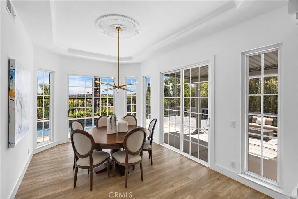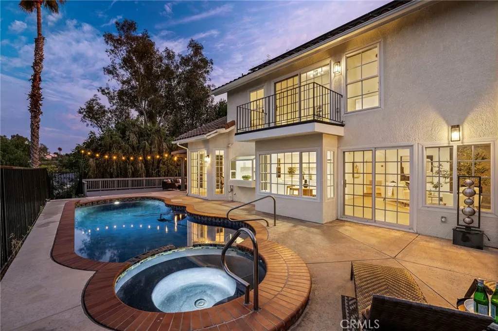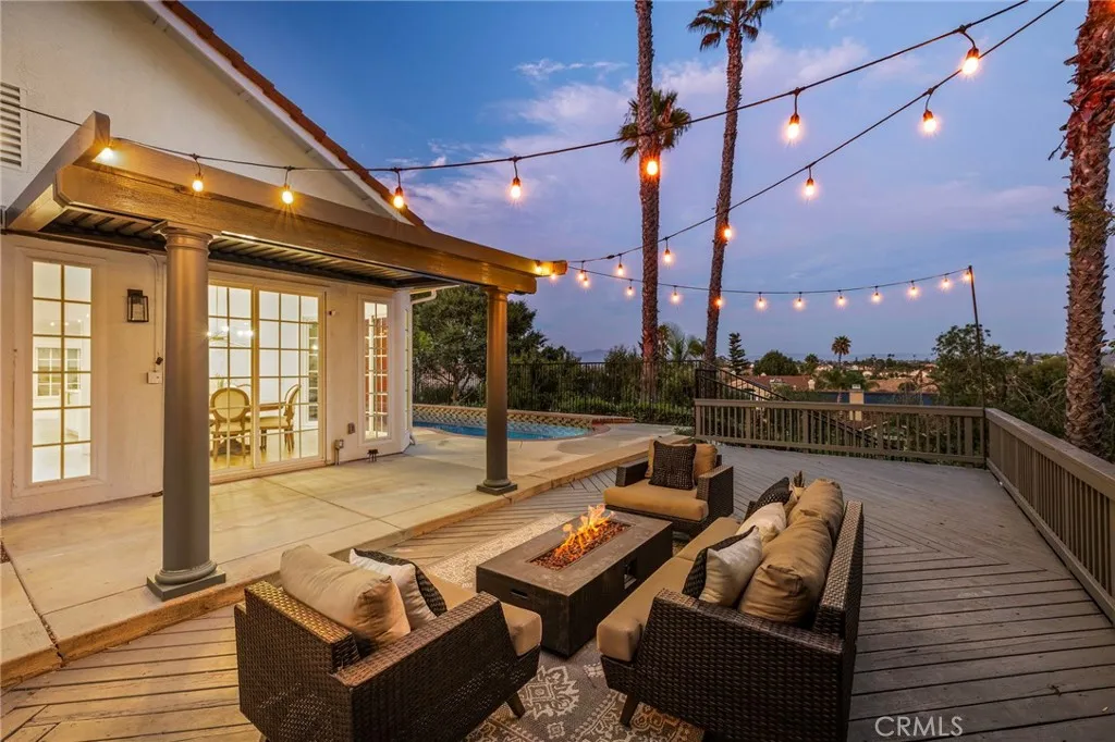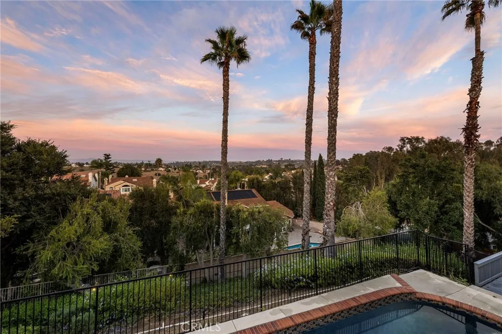 Perched above the canyons of Laguna Niguel with sweeping mountain & sunset views, 29312 Kensington Drive is a contemporary pool home that marries modern design with the best of California living. Set on one of the largest lots in the neighborhood, a unique pathway leads to a lower retreat shaded by mature trees, offering exceptional privacy seldom found in this community. This smart home allows nearly every function to be managed from your cellphone, granting unmatched convenience. Recently updated with stylish finishes & thoughtful upgrades, this turnkey 4-bed, 3-bath residence is move-in ready. A double-door entry & soaring ceilings welcome you into spacious, open living & dining rooms where natural light abounds & a sleek fireplace creates an inviting focal point. The kitchen is a showpiece with a large quartz waterfall island, custom cabinetry, designer tile, high-end stainless steel appliances & a charming atrium window. The adjacent family room offers a 2nd fireplace, wet bar, & sliding glass doors that seamlessly connect to the backyard patio, blending indoor comfort with outdoor living. A main floor bedroom & full bath provides ideal accommodations for guests or multigenerational living. Upstairs, the primary suite is a private sanctuary with vaulted ceilings, dual walk-in closets, romantic private balcony & spa-quality bath featuring a soaking tub, custom-tiled shower, & double vanities. Two additional bedrooms & an updated full bath complete the upper level. The three-car garage provides ample room for vehicles and storage. Highlights include wide baseboards, desi