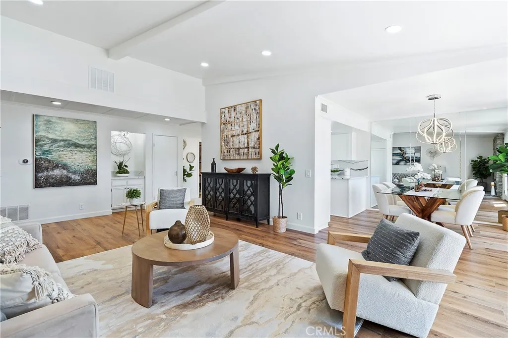 PRICE IMPROVEMENT! Discover this beautifully updated, move-in ready single-level home located in the highly sought after El Niguel Terrace community of Laguna Niguel. Boasting 4 bedrooms and 2.5 bathrooms, this spacious home features a bright, open floor plan with stylish, modern finishes throughout. At the heart of the home is a chef-inspired kitchen complete with quartz countertops, Bosch appliances, a farmhouse sink, built-in microwave, gas range, soft-close cabinetry, and ample pantry space perfect for both everyday meals and entertaining guests. The inviting family room includes a cozy fireplace and opens seamlessly to the private backyard through elegant French doors, offering the perfect setting for outdoor dining or relaxing under the sun. The primary suite is a serene retreat with dual vanities, a generous mirrored closet, and direct access to the spacious patio, ideal for quiet mornings or evening unwinding. Additional highlights include luxury vinyl plank and tile flooring, dual-pane windows & sliding doors, central air conditioning, and a 2-car garage with laundry hookups and extra storage. Residents enjoy access to community amenities such as a sparkling pool and scenic walking trails. With nearby access to Salt Creek Beach, El Niguel Golf Course, Laguna Niguel Regional Park, and the Laguna Coast Wilderness, outdoor adventures are just moments away. Shopping, dining, and coastal destinations are all within easy reach. Check out "The Cove at El Niguel", a 22 townhome-style proposed development on the adjacent parcel of land to this community that is targeting a