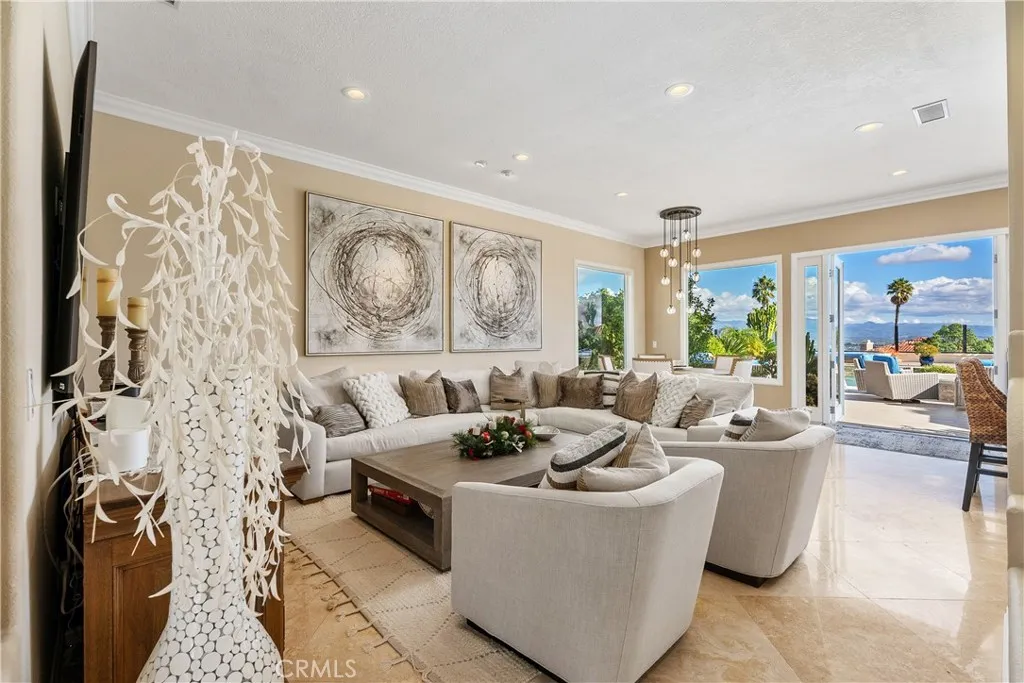 Perched in the hills of Niguel Summit, this exquisite Mediterranean-inspired residence captures panoramic mountain views, sparkling city lights, and endless vistas. Bathed in natural light, the home is exceptionally airy, bright, and spacious, offering an effortless elegance throughout. Thoughtfully upgraded, the residence features four generous bedrooms, three beautifully appointed bathrooms, and a versatile loft, ideal for an office, retreat, or additional living space. A grand sense of arrival begins at the custom-crafted double entry doors, opening to refined interiors accented by artisan wrought-iron stair railings, soaring ceilings, and an inviting open layout. A true entertainers delight, the home blends seamless indooroutdoor living. Step outside to a resort-style sanctuary, complete with cool-spa fire features, a built-in outdoor barbecue pavilion, expansive patios, and multiple lounging areasall set against breathtaking scenic vistas. Perfectly situated minutes from world-class resorts, pristine beaches, premier shopping, fine dining, and the highly anticipated, newly re-imagined Dana Point Harbor, this home offers a lifestyle of elevated coastal luxury in one of Orange Countys most desirable view communities. --