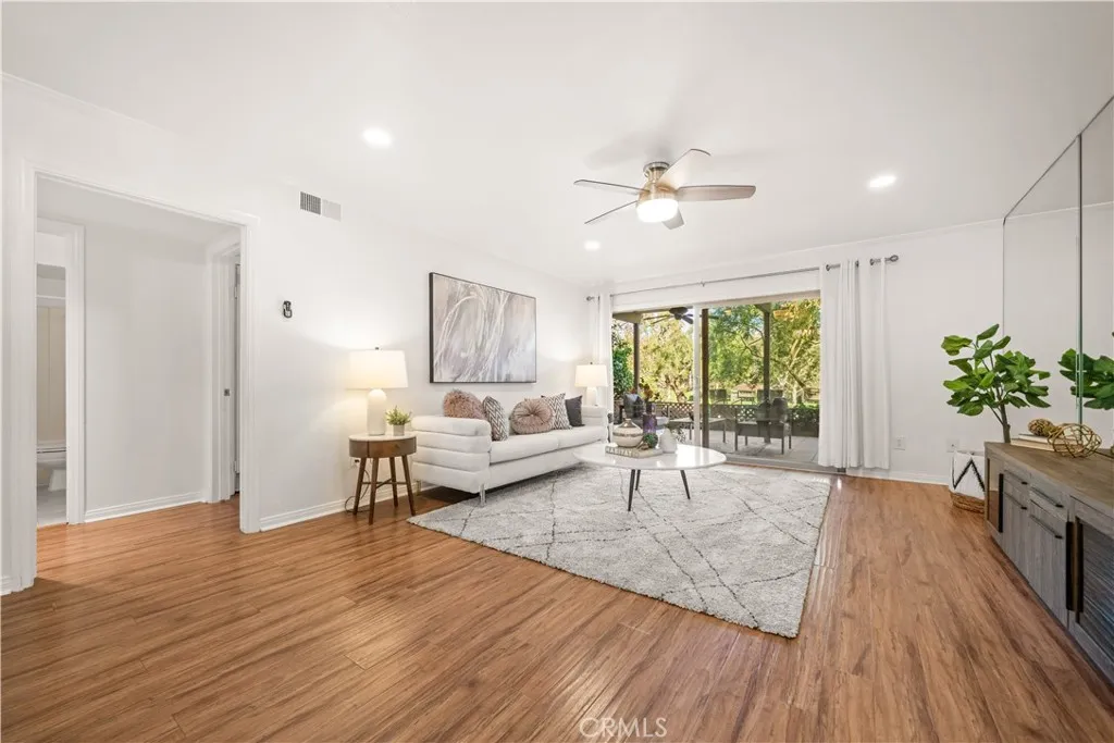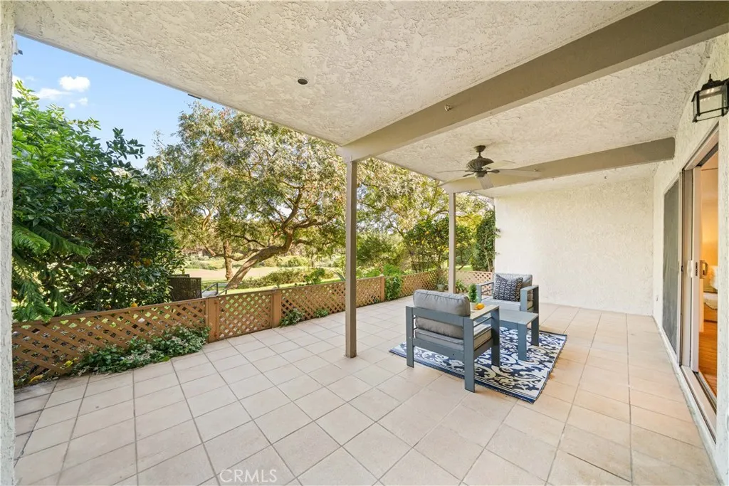 VIEW! VIEW! VIEW! One of the best view in the community! Wonderful opportunity to own this ground-level condo overlooking the beautiful El Niguel Country Club Golf Course, with serene views of the lush fairways, greenbelt, and mature trees. The home features a bright open-concept layout with a welcoming entry that flows seamlessly into the kitchen, dining area, and spacious living room. The living room opens through a large sliding glass door to a generously sized patio, creating an ideal indoor-outdoor living experience. From the patio, enjoy peaceful golf course views framed by mature trees and lush landscaping. The remodeled kitchen showcases beautiful new cabinetry, new countertops, and stainless steel appliances, opening directly to the dining area and living space, making the layout both functional and inviting. The well-designed floor plan offers 3 bedrooms and 2 bathrooms. One bedroom is positioned on one side of the home with a nearby bathroom and enjoys views toward the golf course and greenery. On the opposite side are two additional bedrooms and a second bathroom, with one currently set up as a home office but easily functioning as a third bedroom. Additional features include hard flooring throughout with no carpet, LED recessed lighting and ceiling fan installed in every room, and dual-pane windows and sliding patio doors that bring in abundant natural light. The property includes a detached two-car garage nearby with ample guest parking. HOA dues cover water and trash services. No Mello-Roos tax. The community features beautifully maintained landscaping throug