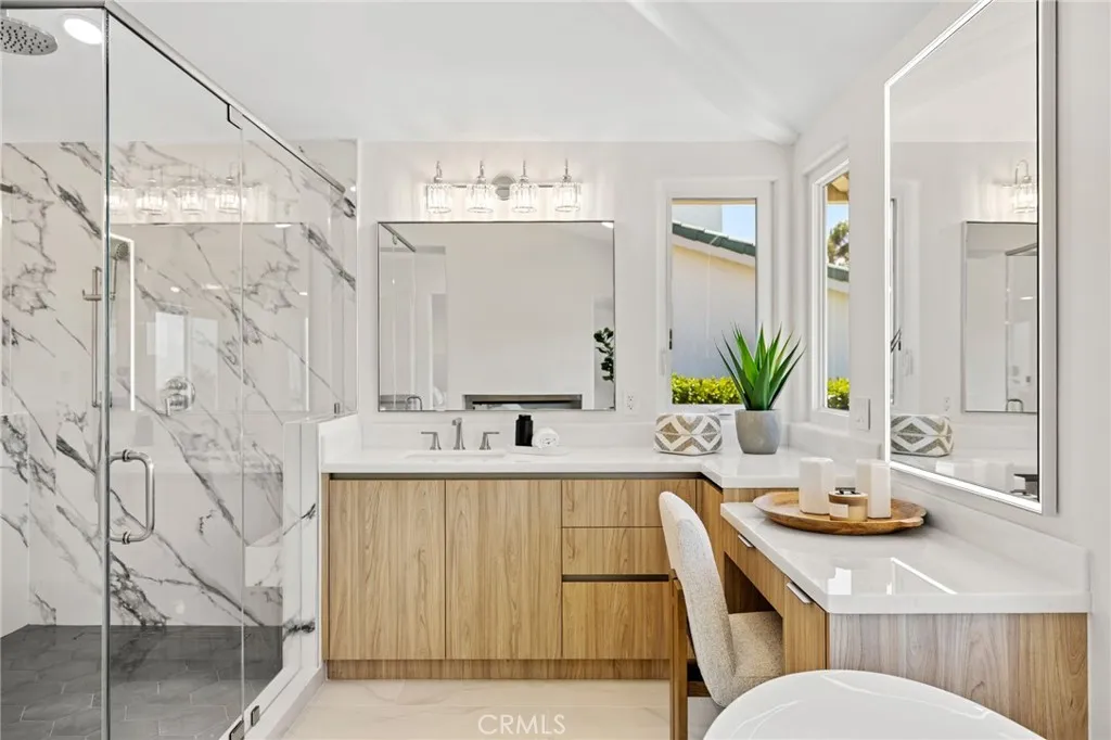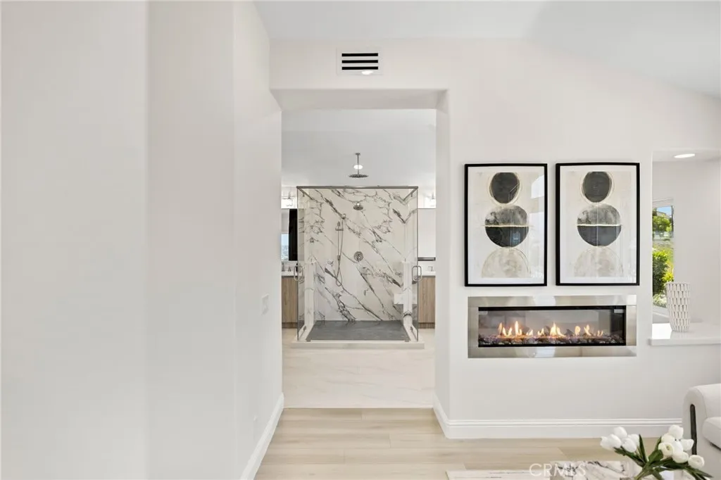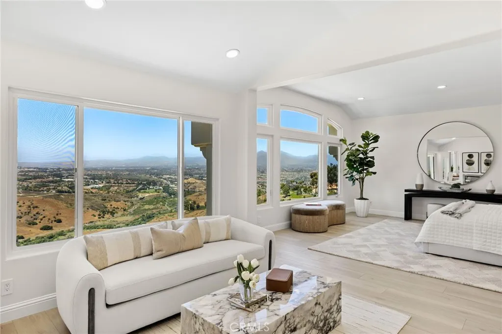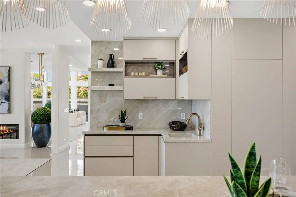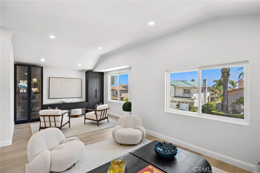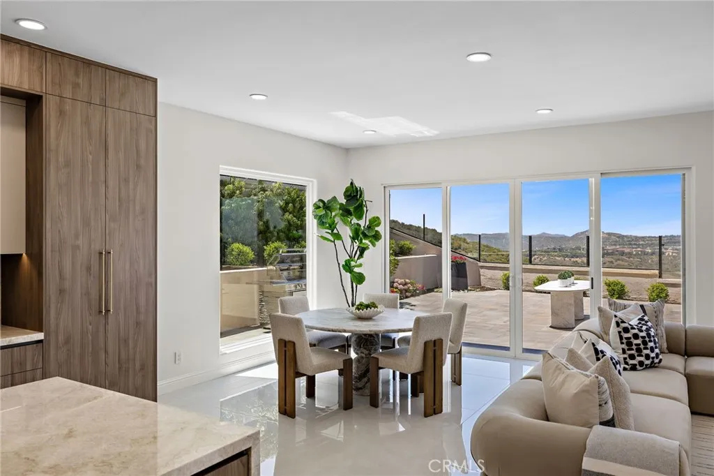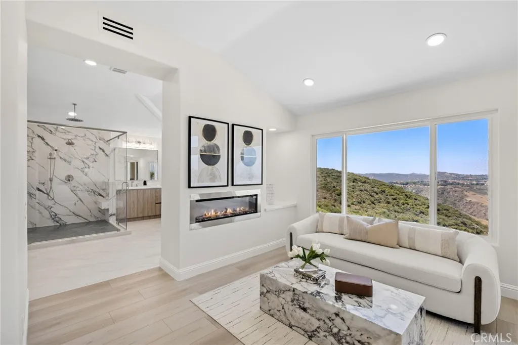 Refined Coastal Living in Guard-Gated Palmilla, Laguna Niguel Commanding a premier front-row position in the prestigious guard-gated enclave of Palmilla, this newly reimagined semi-custom estate offers a rare opportunity to experience elevated living in the coveted heights of Niguel Summit. Encompassing approximately 4,431 square feet on a generous 8,500 square foot lot, this distinguished residence features 4 ensuite bedrooms, 4.5 baths, and sweeping panoramic views of Saddleback Mountain, enhanced by cool ocean breezes from nearby Laguna Beach. An impressive arrival begins at the 12-foot custom iron entry doors, opening into a voluminous interior defined by 18-foot ceilings, Spanish tile flooring, and dramatic floor-to-ceiling windows that flood the home with natural light while framing tranquil city and mountain vistas. The flowing floor plan connects formal and casual spaces with effortless elegance. Anchoring the main living area is a contemporary smart fireplace, seamlessly adjoining a designer chefs kitchen appointed with bespoke Italian cabinetry, Taj Mahal quartz countertops, Thermador appliances, and Italian lighting. Wellness and function converge at the sink with an instant hot water tap and reverse osmosis filtration system. A full ensuite bedroom on the main level offers ideal accommodations for guests or multi-generational living. French doors invite you outdoors to a private and professionally landscaped backyard, thoughtfully enhanced with new pavers and abundant space for alfresco dining and entertaining. Ascending a staircase finished in custom redwood, t