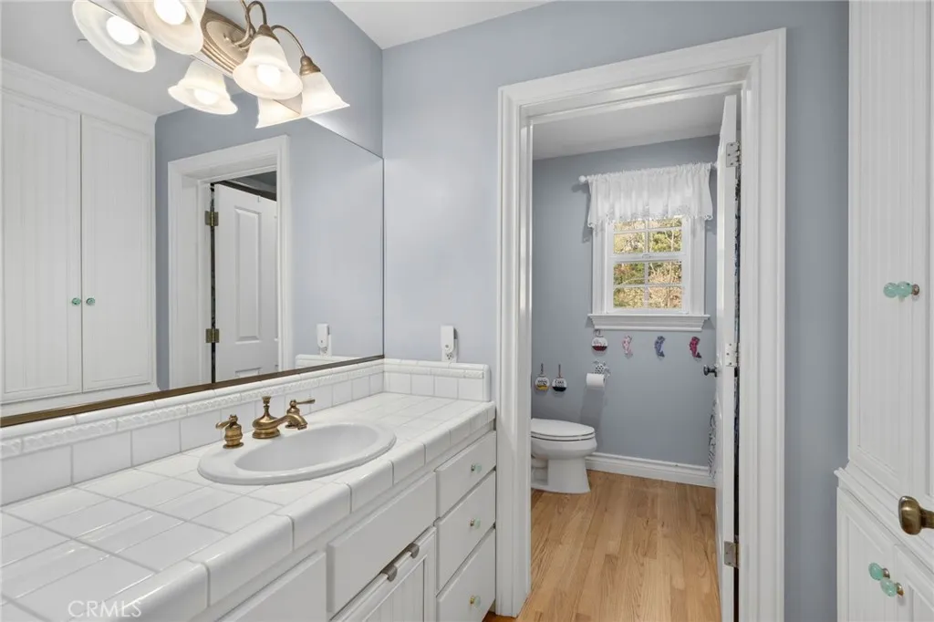 Located in the coveted Tavern Bay neighborhood along the North Shore of Lake Arrowhead, this custom-built home offers a rare blend of refined mountain living and effortless access to the lake, just a short stroll to Tavern Bay Beach Club. Thoughtfully designed and impeccably maintained, the home features 3 bedrooms and 3.5 bathrooms, with quality craftsmanship evident throughout. The main level hosts a beautifully appointed primary suite, creating a sense of ease and livability, while the open, airy layout is equally suited for quiet weekends or hosting guests. You will find a two living rooms and an expansive fireplace anchoring the calming energy of this retreat like home. Upstairs, two generously sized bedrooms are complemented by a bathroom and a whimsical hidden door through the closet to another bonus room offering a playful and unexpected escape, perfect for creating lasting memories for kids and adults. Natural elements take center stage at this unique property, with a seasonal creek and cascading waterfall creating a peaceful, storybook setting, best enjoyed from the expansive deck. The grounds have been carefully enhanced with Aspen and Nordmann Fir trees, drip irrigation, rebuilt retaining walls, and a french drain system, thoughtfully blending beauty with function. The deck has been recently re-stained and features a rebuilt pergola, offering an inviting space for outdoor dining or tranquil peace beneath the trees. Inside, the home balances warmth with modern upgrades. A gas range was recently added, along with a new furnace and air conditioning system, ensuring