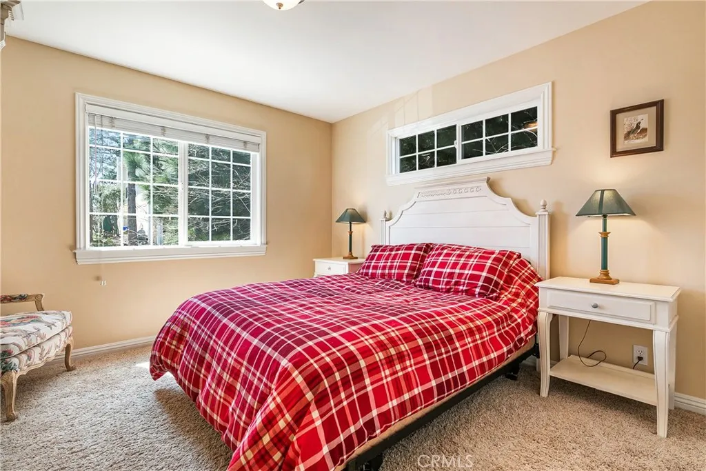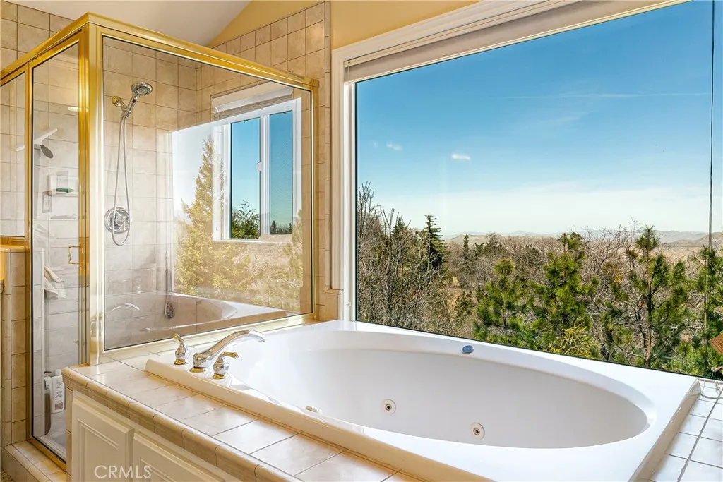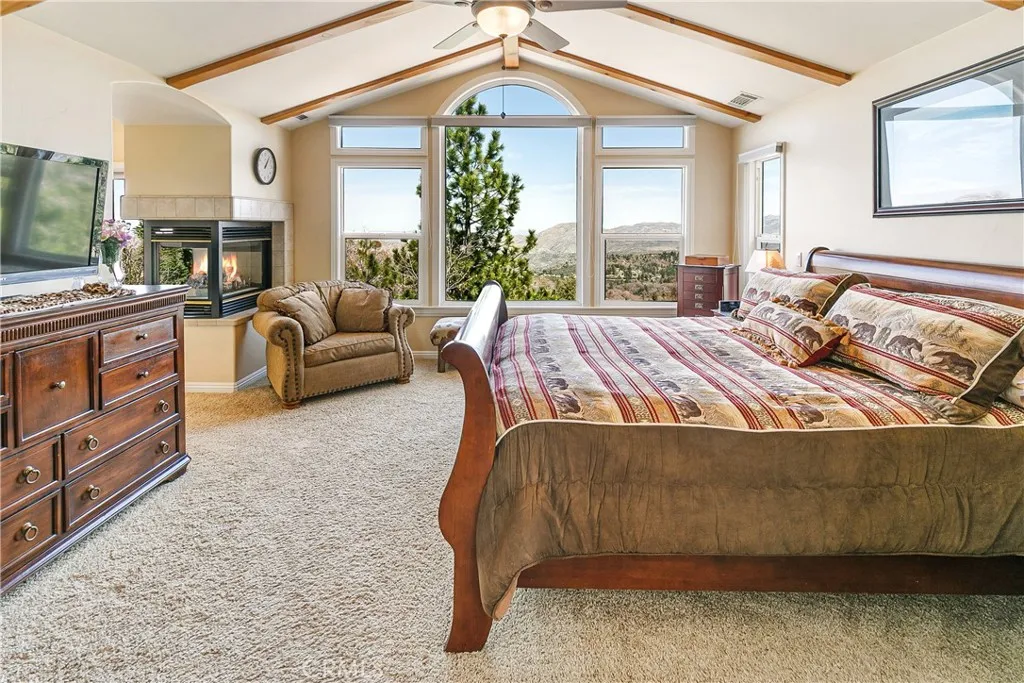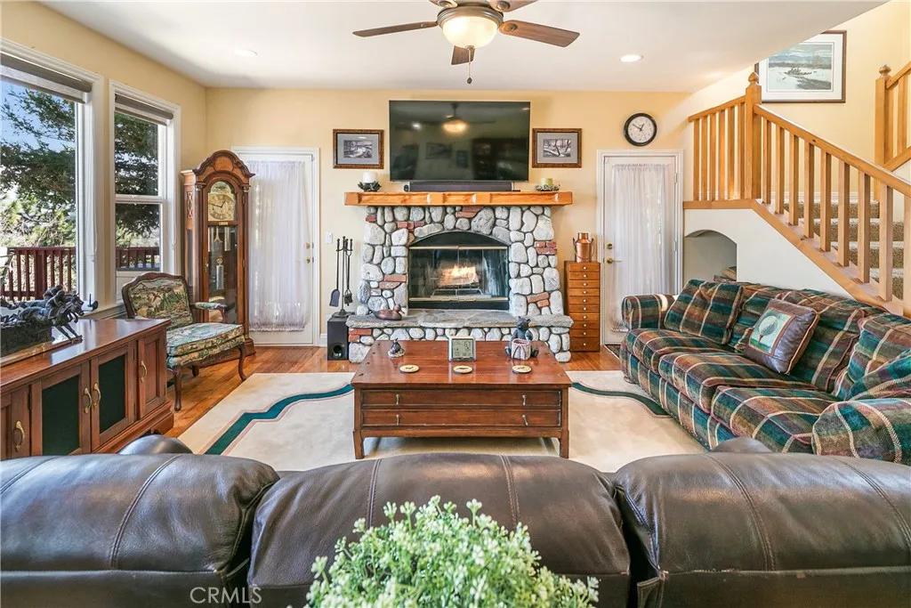 A Rare Mountain Gem with Views That Will Take Your Breath Away. Tucked away in a peaceful, low-traffic neighborhood, this mountain retreat offers the kind of views that are truly indescribablelike stepping into a painting. With 180-degree panoramic vistas stretching across forested ridgelines, the high desert, and twinkling city lights, youll find serenity and inspiration from every window. Plus, this home includes coveted lake rights to Lake Arrowheadadding even more value to mountain living. Enjoy true level entrya prized feature in snowy mountain communitieswith not a single step to the front door. A large driveway able to hold 8 cars, deep two-car garage, and bonus RV parking or boat storage make this home as functional as it is beautiful. Inside, the cozy yet open living room welcomes you with rich hardwood floors, a striking river rock fireplace, and expansive windows that perfectly frame the show-stopping views. A spacious dining area flows into the charming farmhouse-style kitchen featuring white cabinetry, granite countertops, and stainless steel appliancesperfect for hosting holidays and special gatherings. The outdoor living space rivals the interior, with several distinct entertaining decksall finished with a weatherproof surface for year-round use and durability. Whether you're enjoying al fresco dinners, sipping morning coffee, or relaxing under the stars around the firepit, every space was thoughtfully designed to take full advantage of the incredible views. Upstairs, all bedrooms await along with a flex space perfect for game nights, movie marathons, or addi