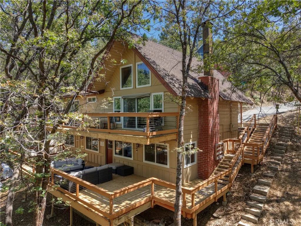 Experience Lake Arrowhead living at it's finest in this beautifully updated Arrowhead Woods home. The North Star cabin is located just minutes from Tavern Bay. This level-entry retreat is stylishly furnished & also a proven, successful vacation rental, offering excellent income potential for investors. The main level welcomes you with high vaulted ceilings and a dramatic wall of glass, filling the living area with natural light and showcasing peaceful forest views. This floor also includes two bedrooms, a bright kitchen, and a comfortable dining area and a full bathroom. Step outside onto the expansive deck, ideal for relaxing or entertaining among the towering oak trees. Downstairs, enjoy a spacious family room, a well appointed wet bar, and two additional bedrooms, a second full bathroom, along with another large deck for year-round enjoyment. Surrounded by mature oaks, this home offers both serenity and strong rental appeal. The motivated seller is also offering a paid rate buy down! So no reason to hesitate. Jump on this one today and make it your very own!