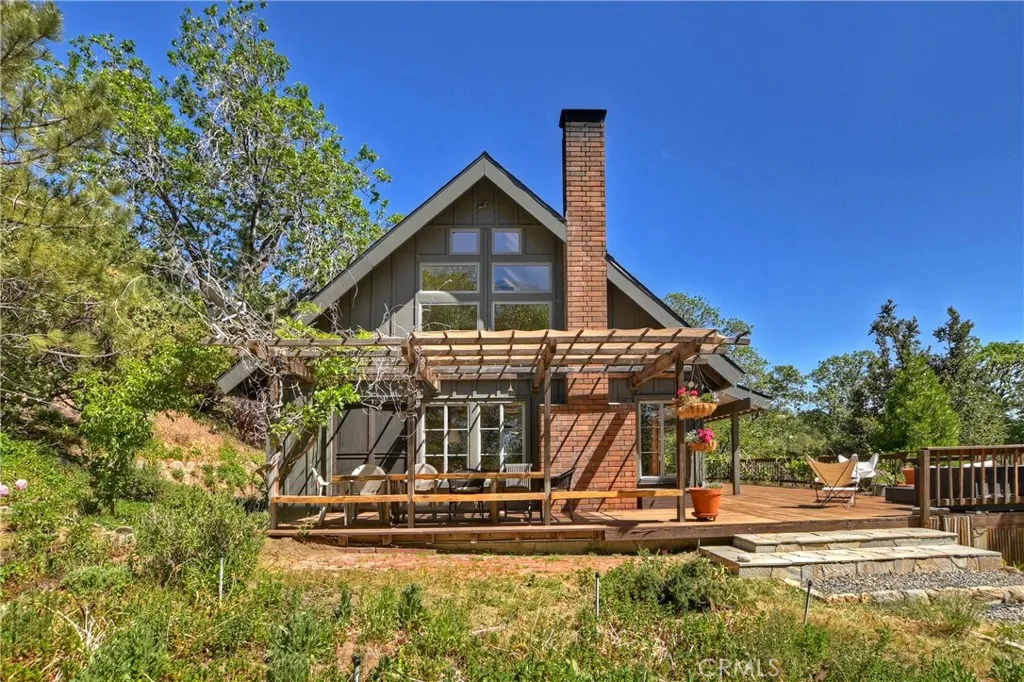 Imagine strolling through your 2.9 acre parcel; blanketed within a canopy of mature Oak Trees, a variety of apple trees, and wildflowers throughout. Breathtaking views of the Northern Pinnacle rock formations. A pathway winding through the forest leads to your private swimming pool with slate sunbathing deck, and croquet area. Horses rest in their stables just beyond the secluded pool. Enjoy relaxing evenings, creating memories with family and friends on a massive wrap around rear deck overlooking the grounds. Winter holidays cozied up next to the stone fireplace which rests in a spacious open concept living room with two story cathedral ceiling. Living room offers wrap around windows, hardwood flooring, built in bookcases, and level entry out to the rear deck. Updated kitchen open to the living room complete with solid surface counters, farm house sink, and stainless appliances. This 3,052 sq ft ranch house features 4 bedrooms, 3.5 baths. Primary bedroom en suite, laundry room, kitchen and living room all conveniently located on the main level. Level entry from front door and garage entryways. Upstairs offers 3 guest bedrooms(one being en suite with bath attached) and a home office. Level driveway provides plenty of room for multiple guest and boat parking. Full lake rights to private Lake Arrowhead and zoned equestrian. There's an equestrian easement which allows you to ride directly from the stables into the National Forest. Off road vehicle enthusiast? Ride straight from the property and connect to miles of single track ATV & mountain bike trails. Property includes its
