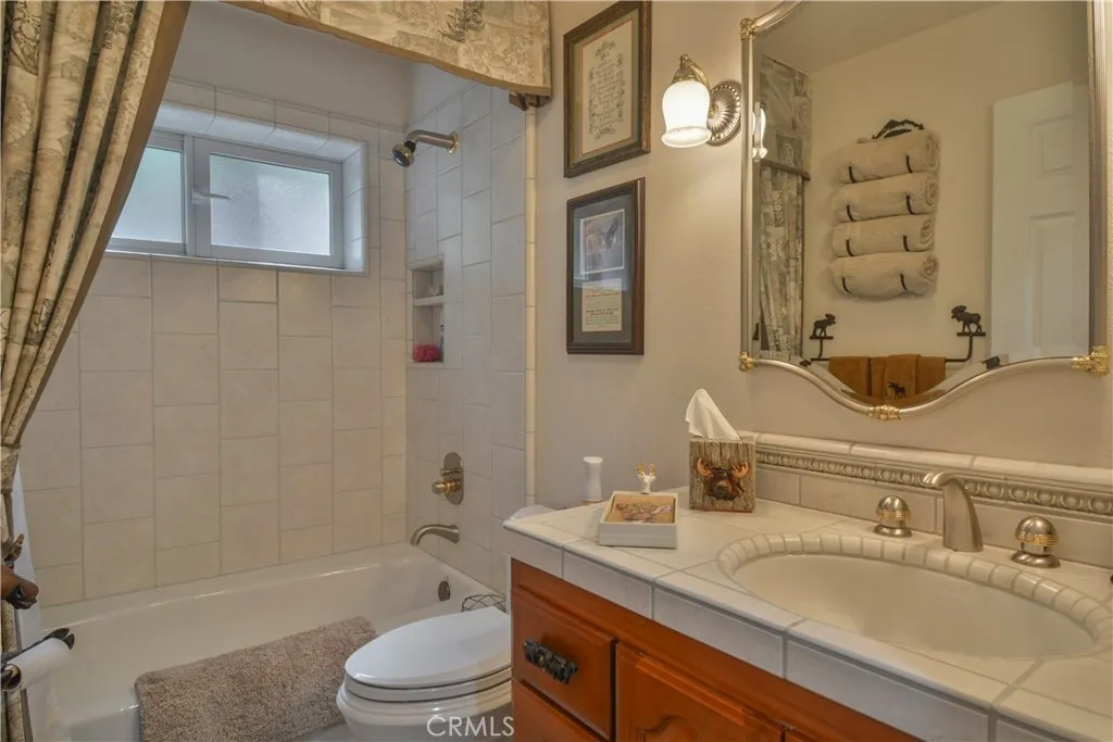 PRICED TO SELL! Nestled on the hillside across from the Golf Course is this charming mountain retreat offering a cozy and inviting atmosphere. Enter an impressive stone stairway surrounded by landscaping to a front porch. As you walk through the front door to an entry on the main level you find the living room with its vaulted beamed tongue and grove ceilings and a focal point fireplace with its floor to ceiling rustic stacked stone with bold wood mantel and frame. French doors open from this stately but cozy living room to a large private deck. On this main floor you also have the formal dining room, two bedrooms, (one has a built-in desk and cabinets-owner willing to remove), a full bath and Kitchen. The updated Kitchen has top of the line stainless appliances, granite counters and tumbled marble backsplash, spacious enough for the family to enjoy with room for a large eating area. Upstairs is a large main en-suite bedroom with 2 closet areas, one a wall of mirrored sliders the other is a walk-in closet, the large bathroom has dual sinks, a Jacuzzi tub and shower, there is also another room currently used as a sewing room but could be office/sitting room so many options. Outside you'll find whimsical pathways that lead to the backyard and private access road great for strolling and enjoying the forest. Parking is no problem with its attached 2 car garage, a carport for two more vehicles and long enough driveway for a couple more. Plenty of room for the whole family. To add to all this charm there is also; dual air conditioners, a whole house generator, an extra storage sh