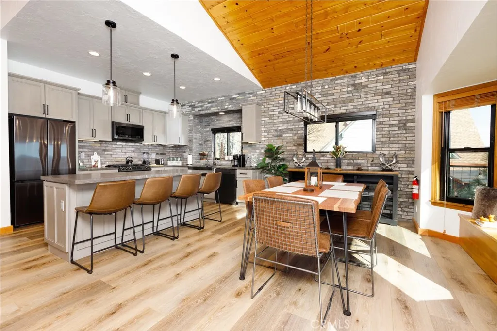 Here is what you have been looking for! Your mountain retreat with Lake Rights that comes fully furnished. This level entry home with two car garage was Completely remodeled in 2024 with no expense spared. It features high-end finishes, luxurious upgrades, and modern amenities. The Wow factor is the open concept living space designed to maximize its incredible views of Grass Valley lake and Lake Arrowhead Country Club . Some special features include: Brand new Kitchen, special order porcelain countertops, custom cabinetry, black stainless steel appliances, custom brick work in kitchen and dining room walls, custom expansive bi fold doors opens seamlessly to the deck from the living room, the fireplace and mantel redone in stone, all three bathrooms remodeled show case custom tile work, new lighting, handrails in house and deck. Practical upgrades such as; upgraded lighting fixtures throughout, and a durable metal bear-proof trash container. Additional features include heavy duty snow blower, backup generator with a direct hook-up, a built in air compressor, and an optional stair lift that can be reinstalled for added accessibility. The garage hobbyists dream, featuring a full cabinetry workshop with ample storage and workspace. There's just too many upgrades to list. This house is a must see.