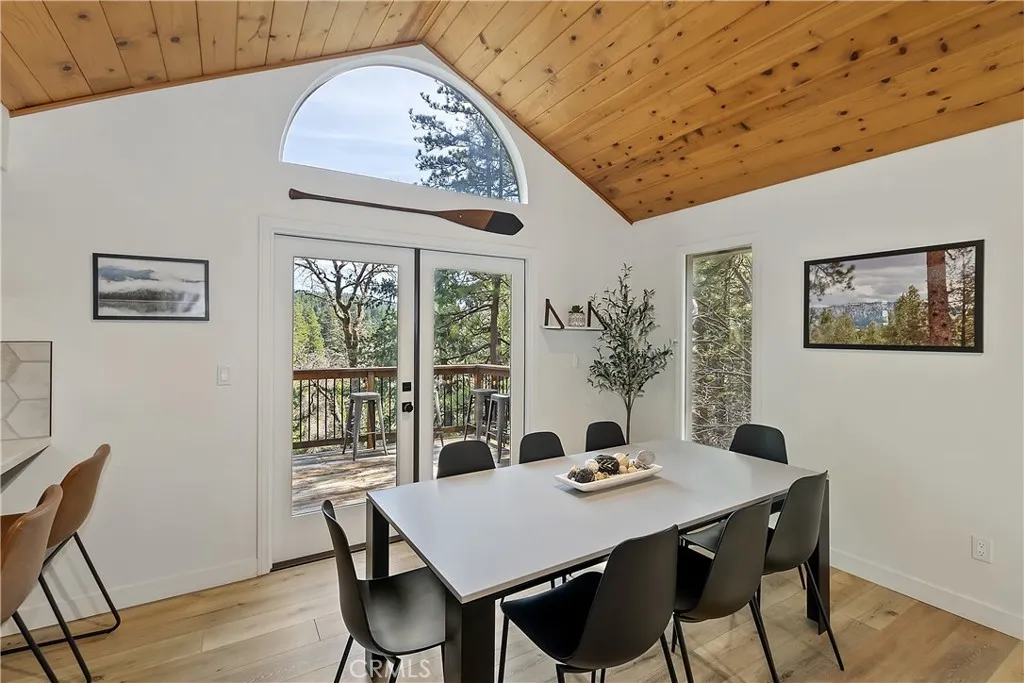 Step into your dream getaway! This exquisite mountain cabin has been completely remodeled top to bottom, inside and out! Conveniently situated in Arrowhead Woods, this property includes lake rights, is a plowed & maintained road and comes fully furnished, decorated & equipped, making it ready for you to enjoy right away! Surrounded by towering pines providing gorgeous forested views from every window! All New kitchen, baths, paint, flooring, decks, trim... You name it, it's been done! Starting with fun Dutch front door that welcomes you into a bright open-concept living and dining area. Marvel at the gorgeous tongue-and-groove ceilings that exude warmth and sophistication, complemented by a modern fireplace and accent wall for a cozy yet stylish atmosphere. Enjoy luxury living with high-end vinyl wide plank oak flooring throughout, offering both comfort and durability. The spacious entertainers back deck invites you to take in the beauty of the surrounding Pine trees, creating a serene backdrop for gatherings with family and friends. The chefs kitchen, adjacent to the dining area, boasts custom cabinets, stunning quartz countertops, and a chic honeycomb tile backsplash, perfect for culinary adventures. A custom mudroom and laundry area provide ample storage for all your winter gear! This cabin is designed for relaxation and fun, featuring a main-level bunk room ideal for kids and their guests, plus a full guest bathroom. The lower level is a retreat of its own, showcasing two additional bedrooms and another full bath. The larger primary bedroom is a peaceful haven with a bu