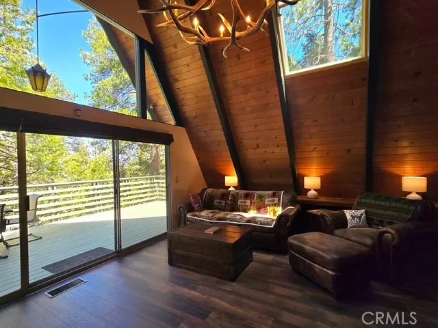 HUGH PRICE REDUCTION!!! Lake Rights! Charming A-Frame Retreat with Guest Studio Your dream forest getaway awaits! Nestled on a county-plowed road, this classic A-frame cabin is filled with woodsy charm, natural light, and modern upgradesperfect for family escapes, couples' weekends, or flexible multi-generational stays. Main House Highlights: Iconic A-frame design with soaring windows and skylights for all-day sunlight and forest views 3 bedrooms, 2 full baths, plus a cozy game room downstairs for family fun Warm, knotty pine interior and a sunny main-level deck with a peek of the lake Separate Guest Studio: Fully remodeled studio apartment with kitchenette, bath, and private entranceideal for guests or rental income Pet-Friendly Features: Covered, chain-link dog run with direct access from the bedroom dog doorlet your pup roam safely while youre away Major Recent Upgrades: New furnace + A/C, new copper plumbing, new electrical panel, interior/exterior paint Includes washer/dryer, electric generator, WiFi water shutoff valve, and wired for security Easy Access & Parking: County-maintained access road via Little Bear and Elmwood Two parking spots just steps to the front door, with more parking down on Cottonwood Blue Jay Village less than a mile awayshop, dine, and unwind in minutes Fully furnished (with a few exceptions)just bring your weekend bag! On the corner of Cottonwood and North Bay there is an ALA access gate.