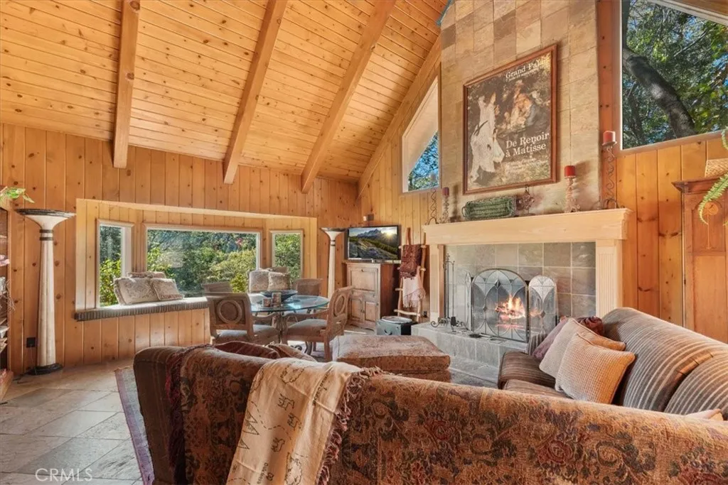 **This home needs some Tender Loving Care, but what an opportunity!** Located just a short distance from the North Bay area of Lake Arrowhead, this property offers private lake rights with a membership to the Arrowhead Lake Association. Enjoy boating, fishing, skiing, and wakeboardingjust a few of the many recreational activities available. The home features three levels of living space. The lower level includes a three-car garage, a laundry room, and a storage area. The main level offers a living room with a cathedral ceiling, picture windows, and a fireplace; a kitchen with a breakfast nook and bay window; a formal dining room with deck access; a massive family room with a fireplace and wet bar; plus a bedroom and bath. The upper level includes a primary suite with an en suite bathroom and access to a viewing deck, along with three additional bedrooms and two hall baths. Other highlights include Knotty Pine paneling, ceiling fans, crown molding, and majestic mountain views.