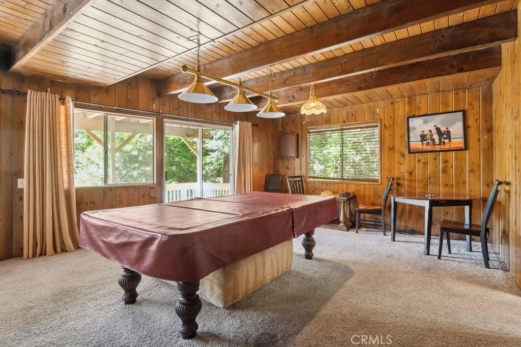 Privately Nestled Mountain Retreat with Incredible Views on Every Level. Experience peaceful mountain living in this beautifully situated multi-level home, offering incredible views of the trees and mountains from every level. Tucked away for privacy and surrounded by nature, this home features high ceilings with tongue-and-groove woodwork and exposed beams, paired with large windows that flood the interior with natural light and frame the scenic landscape. On the main living level, you'll find a warm and inviting living room with a fireplace, dining area, and kitchen, all with access to a wraparound deck that offers panoramic views. This level also features two well-sized bedrooms and a full bathroom. The lower level welcomes you with a spacious game room that opens to a covered deck nestled among the treesperfect for relaxing or entertaining. This level also includes a bedroom, laundry area, and a closet with shower for added convenience. Upstairs the top floor boasts a cozy loft with access to a private balcony and leads to the expansive primary suite, complete with a spacious en suite bathroom and treetop views. Located just minutes from Blue Jay Bay at Lake Arrowhead and a short drive to Lake Arrowhead Village. Whether you're looking for a full-time residence or a serene mountain getaway, this property is a must-see.